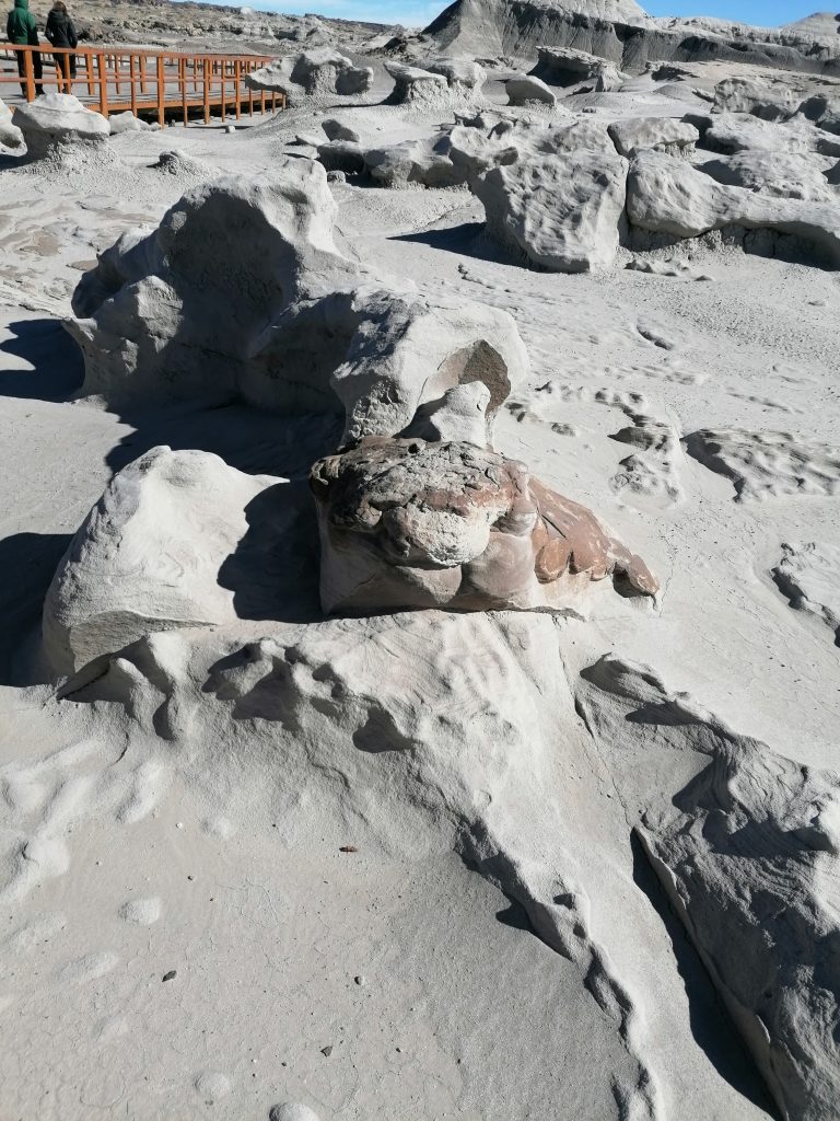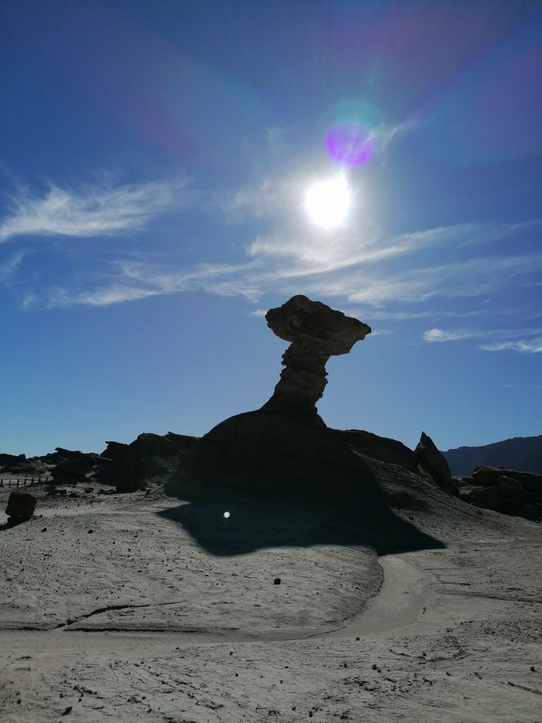 Nächster Stopp ist das „Submarino“, sowie zwei von den typischen Pilzformationen, für die der Park bekannt ist. Hier sind man an den Steinformen deutlich, dass das mal unter Wasser war. Es wirkt wir ein trockenes Riff.