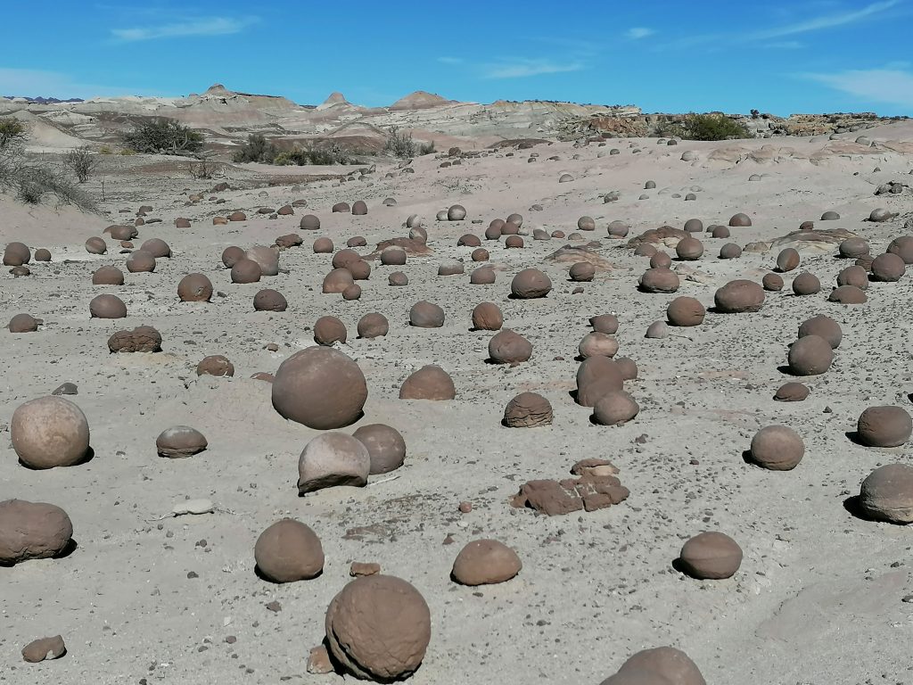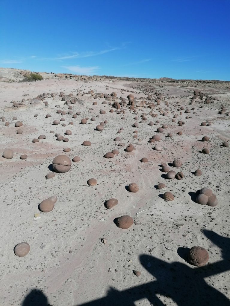 Der Guide erklärt, dass es über die Formation nur Theorien gibt. Die nahezu perfekten Kugeln haben einen Kern, so viel ist klar. Scheinbar bilden sie sich tief in der Erde, in einer flüssigen Schicht, wo sich der Kern aus Erde bildet. Dann wird der Erdbrocken durch die Bewegung der Kontinentalplatten in der Flüssigkeit hin und her gewogen, sodass sich die runde Form ergibt. Druck, Reibung, Bewegung schieben den Ball nach oben, bis er an der Oberfläche ankommt. Das ist die Theorie. Einige davon wurden künstlich dazugelegt, doch der Großteil wurde natürlich so vorgefunden. Irre! Sie nennen es „das Boule-feld“, weil es wirkt wie die Kugeln im „Boule“-Spiel. Laut Guide tauchen die Kugeln nicht nur hier, sondern überall auf der Welt auf, aber die Quantität hier ist schon auffallend.