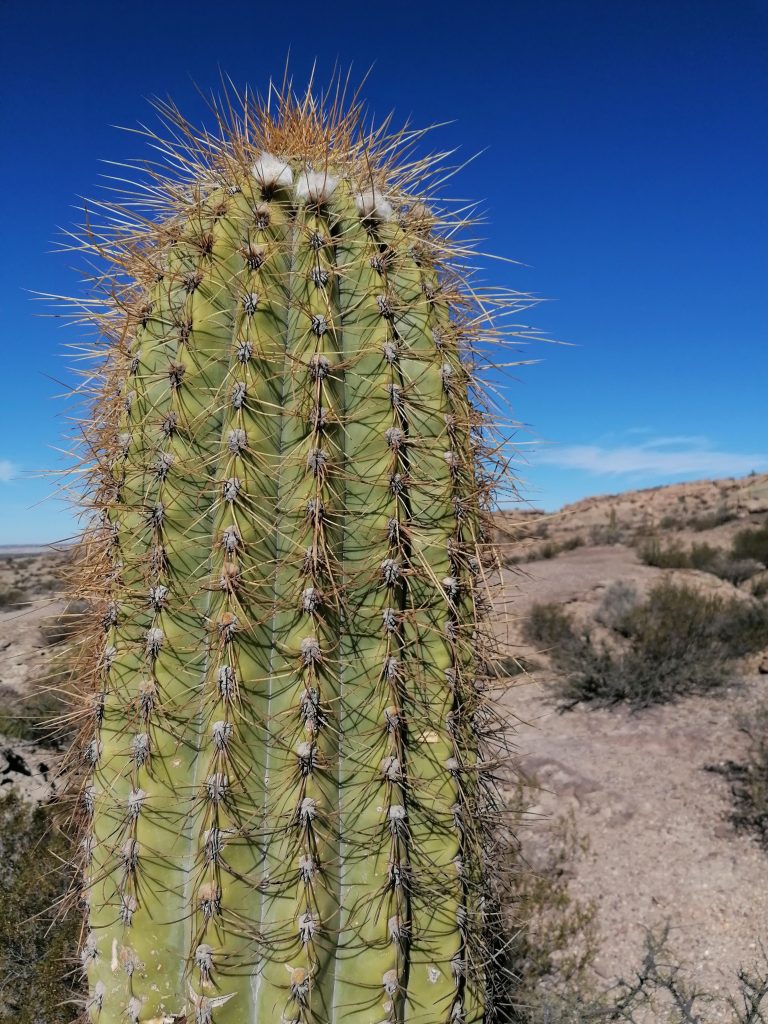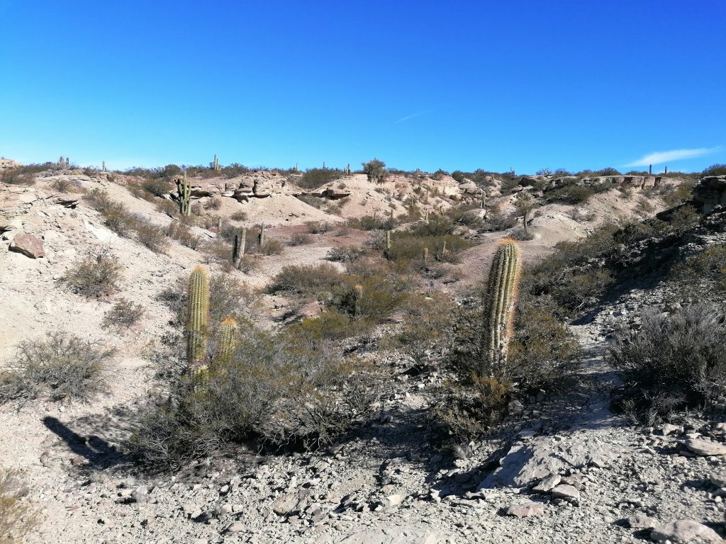 Wir fahren lange. Fast dreieinhalb Stunden sind wir unterwegs. Die Landschaft wird noch trockener und dann sehe ich sie: meine ersten Kakteen. Riesig groß, in allen möglichen Formen, manchmal nur alleine, manchmal mit zehn Wucherungen. Was für ein faszinierendes Gewächs und wunderschön, vor allem in der Menge. Eine ganz ungewohnte, neue Landschaft. Wir halten an einem Aussichtspunkt über ein Tal, wo wir die Landschaft kurz ein bisschen genießen können, doch schon bald geht es weiter, damit wir rechtzeitig dort sind.