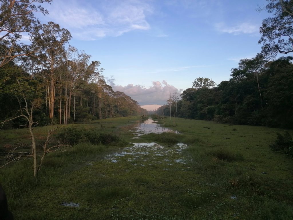 Eine halbe Stunde später zeige ich wieder mein Ticket vor, lehne wieder das TukTuk ab und fahre dann in den Dschungel zu den Tempeln! Nachdem ich gestern eher bei den Nebengebäuden unterwegs war, geht es heute zur Hauptattraktion: Angkor Wat – Zentrale Tempelanlage. Ich hab schon Gänsehaut.