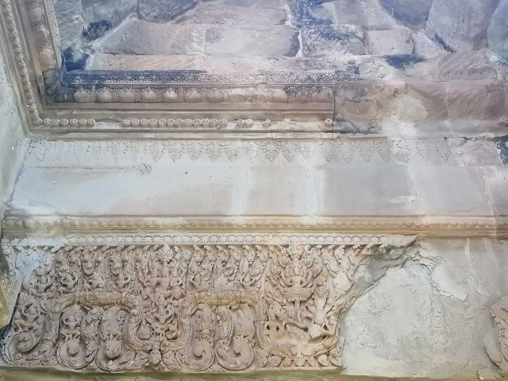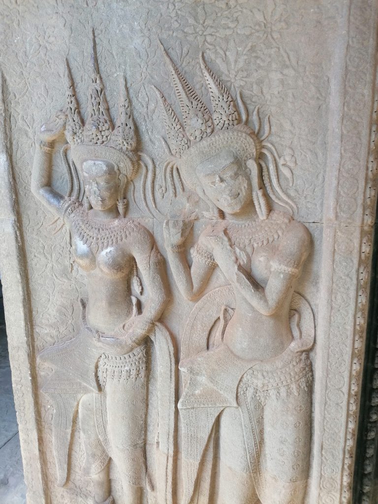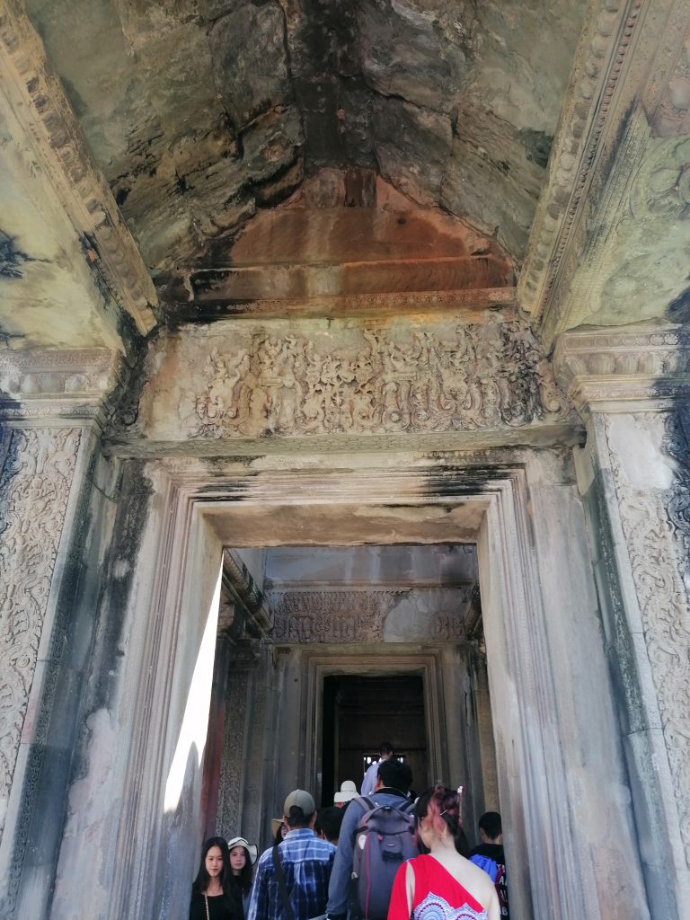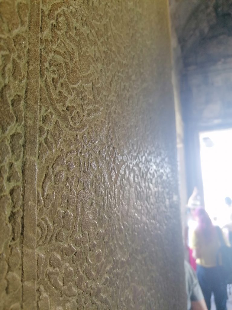 Um das Jahr 802 wird mit Javayarman II. der erste König eines Reiches gekrönt, das das einflussreichste in ganz Südostasien sein wird: Das Volk der alten Khmer entsteht. Dieses Reich ist all seinen Vorgängern und den meisten seiner Nachfolger in Wirtschaft, Militär und Kultur um vieles Überlegen. Kambodscha ist heute nur noch ein kleiner Teil des Riesenreiches, das sich einst über Thailand, Laos und Teile von Vietnam erstreckt hat. In seiner Hochzeit (11.-13 Jh) lässt König Suryavarman II. eine Tempelstadt erbauen, die ihres gleichen noch heute sucht: Angkor Wat. „Angkor“ bedeutet Hauptstadt, „Wat“ bedeutet Tempel. Die Stadt wurde nach der entsprechenden Religion im hinduistischen Stil gebaut. Die Verzierungen, die ich so bewundere sind Bilder von hinduistischen Gottheiten oder Symbole der Religion, manchmal Krieges-/Siegeszüge.