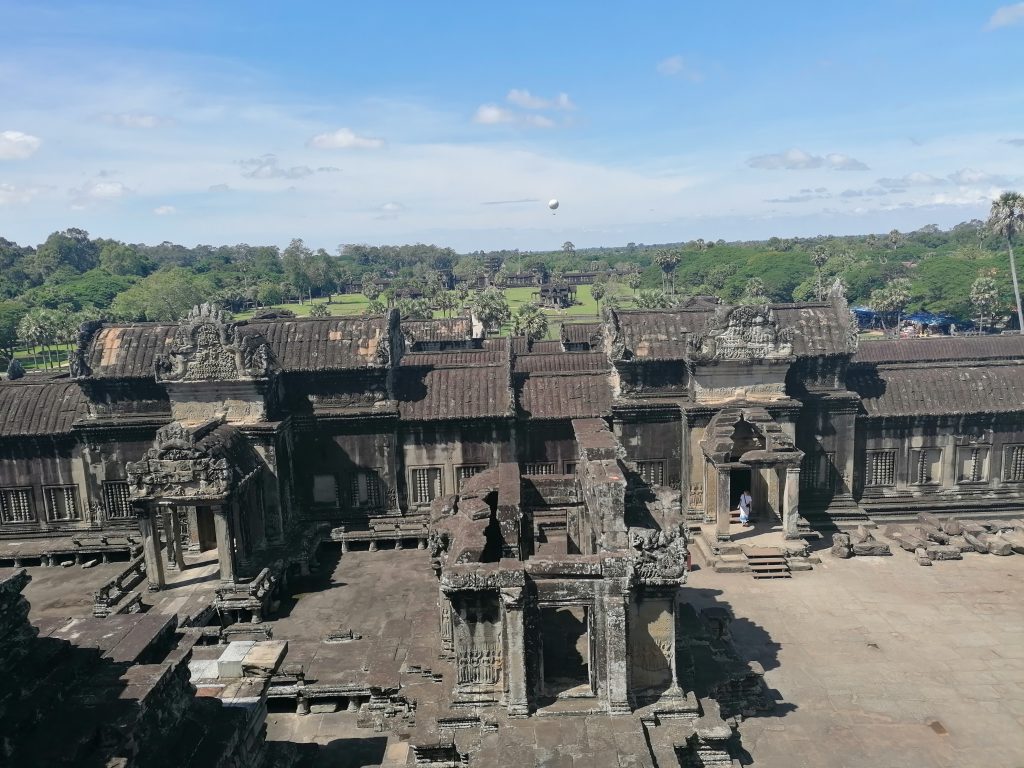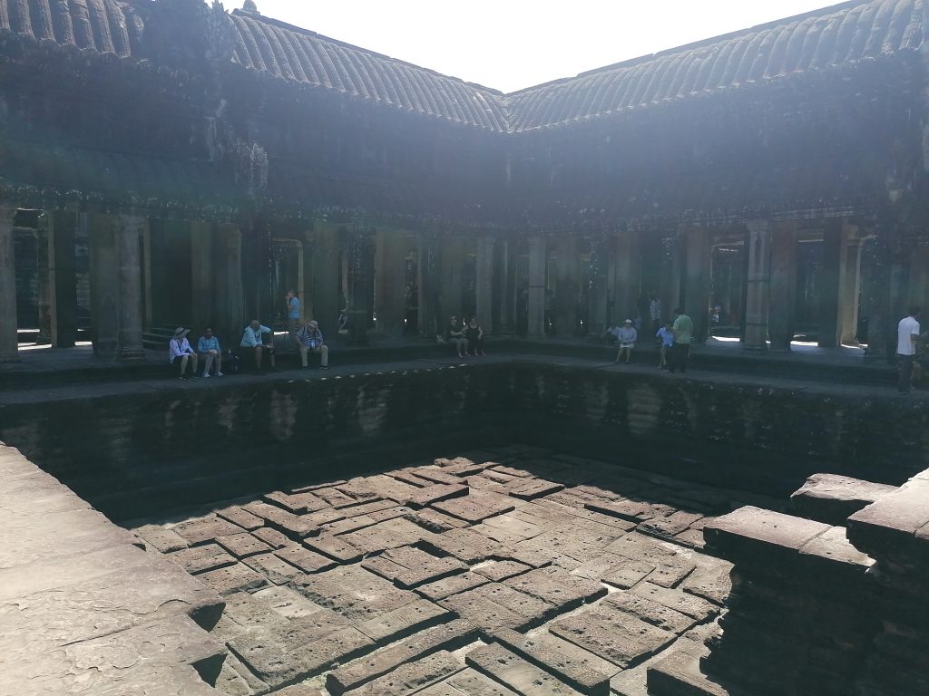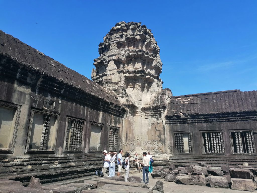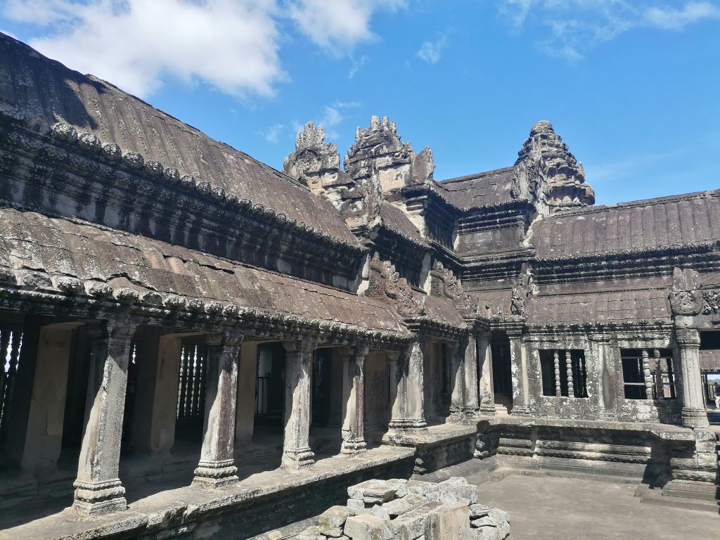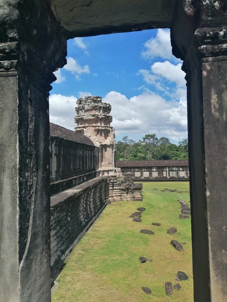 Ich streife rundherum durch den Tempel und seine endlosen Gänge und Treppen. Ihr erkennt auf den Bildern hier und da die steinernen Innenhöfe, die sich durch die Rundgangarchitektur automatisch bilden. So wie die Touristen dort im Schatten sind, finde auch ich einen ruhigen schattigen Platz, die Türme immer gut im Blick. Ich setze mich und schaue mich in Ruhe an allem satt, spüre die Energie des Ortes. Es ist unglaublich schön. Dann öffne ich mein Handy und suche eine Website, auf der die Geschichte und Bedeutung des Ortes gut nachvollziehbar ist.
