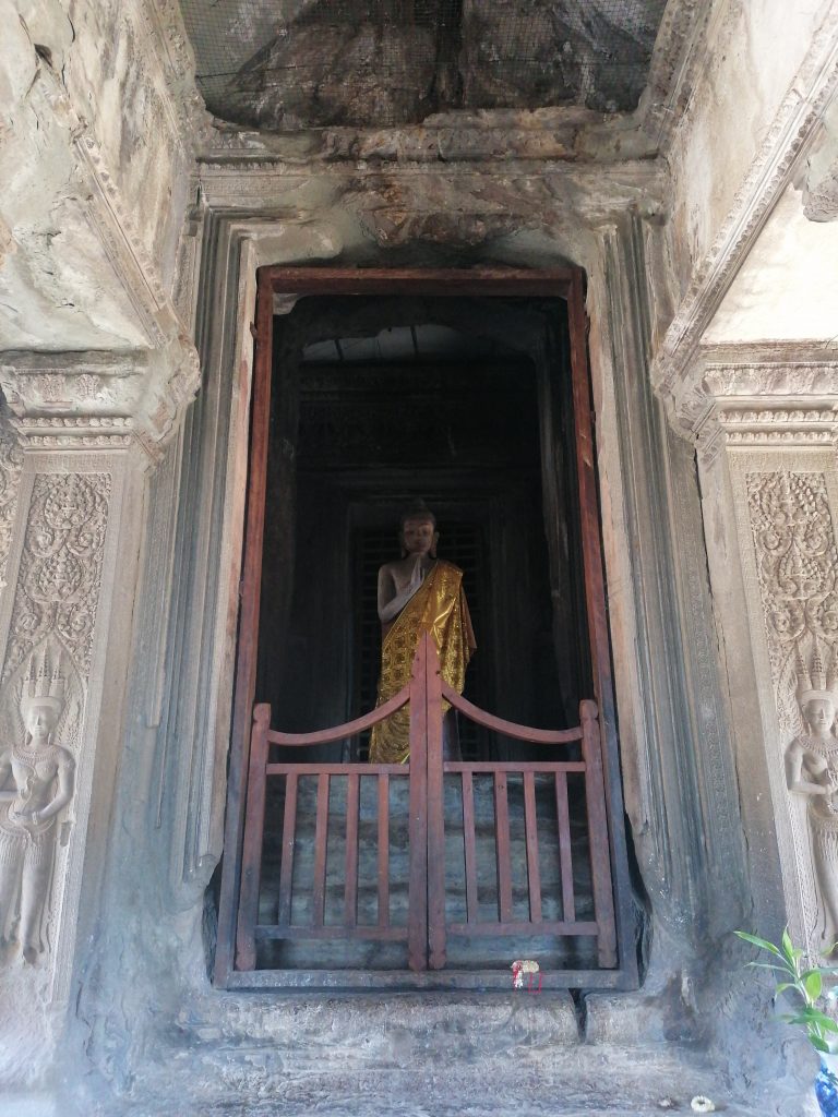 Natürlich ist hier deutlich mehr los, war zu erwarten. Um den Haupttempel gibt es große Parkplatzbereiche, an denen ich problemlos vorbeiradle und direkt vorm Eingang parke. Dort kommen Guides auf mich zu, aber ich lehne ab. Das wäre sicherlich interessant gewesen, aber ich spüre einfach, dass ich diese Tempelstadt gerne ganz für mich alleine erkunde. In meinem Tempo. Dieser Ort strahlt trotz großer Touristenströme eine unerklärliche Ruhe aus. Ich bin jede Minute gerne hier, nicht gestresst (außer wenn mein Reifen mitten im Nirgendwo platzt), Zeit existiert nicht, nur erkunden, bewundern, Eindrücke aufnehmen.