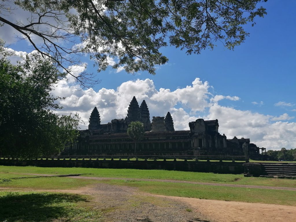Danach folge ich dem Weg hinten rum aus dem Tempel heraus und bin plötzlich fast alleine. Neben mir ist ein Wald, vor mir der majestätische Anblick und einer der wenige Male, wo man eine wirklich gute Sicht auf die fünf Türme hat.