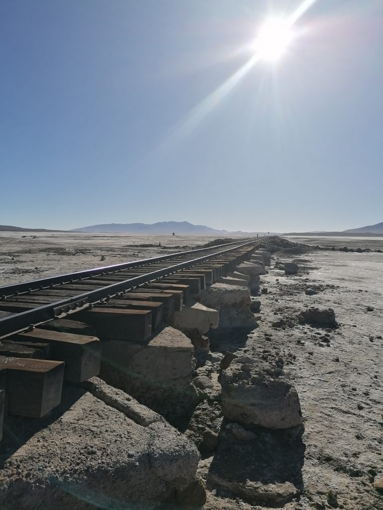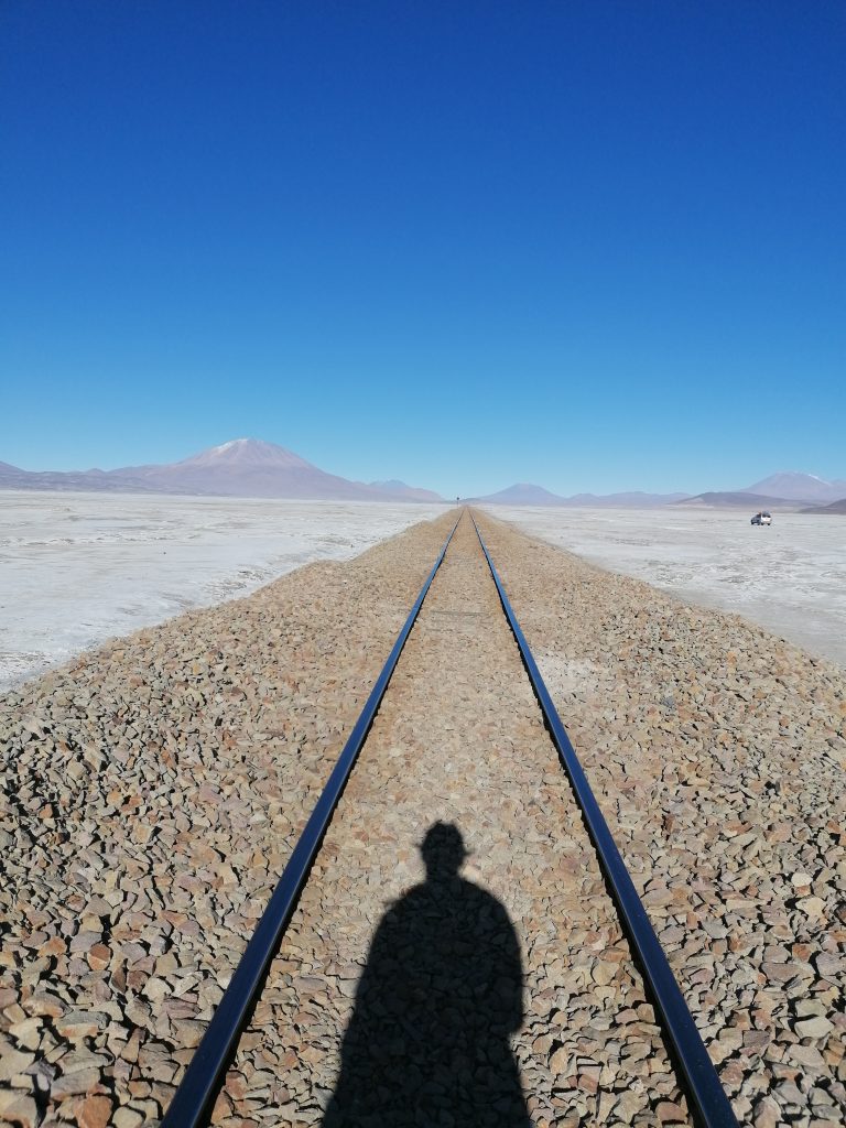 Danach fahren wir wieder raus ins Nirgendwo, halten nochmal an der Zugstrecke nach Chile für ein paar Fotos.