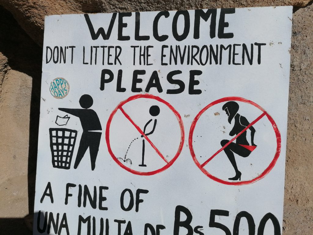 Der nächste Stopp ist wieder eine Art Kaktusinsel. Das Klo kostet hier übrigens überall ca. 5 Bolivianos. Dann kriegt man Klopapier und kann dann auf eine mehr oder weniger gute Toilette gehen. Unser Guide erklärt uns die schöne Alternative: „Baño de Incas“ – Pinkeln wie die Incas, einfach in die Natur. Dabei ist es doch überall verboten zu pinkeln, wie man auf dem sexistischen Schild beim Vulkan gesehen hat. Ich hab übrigens auch bessere Alternativen gesehen, das dort war das schlimmste. Kurzentschlossen gehen wir also hinter einen Stein und benutzen das Naturklo, deutlich besser und günstiger, das werden wir ins Zukunft öfter machen.