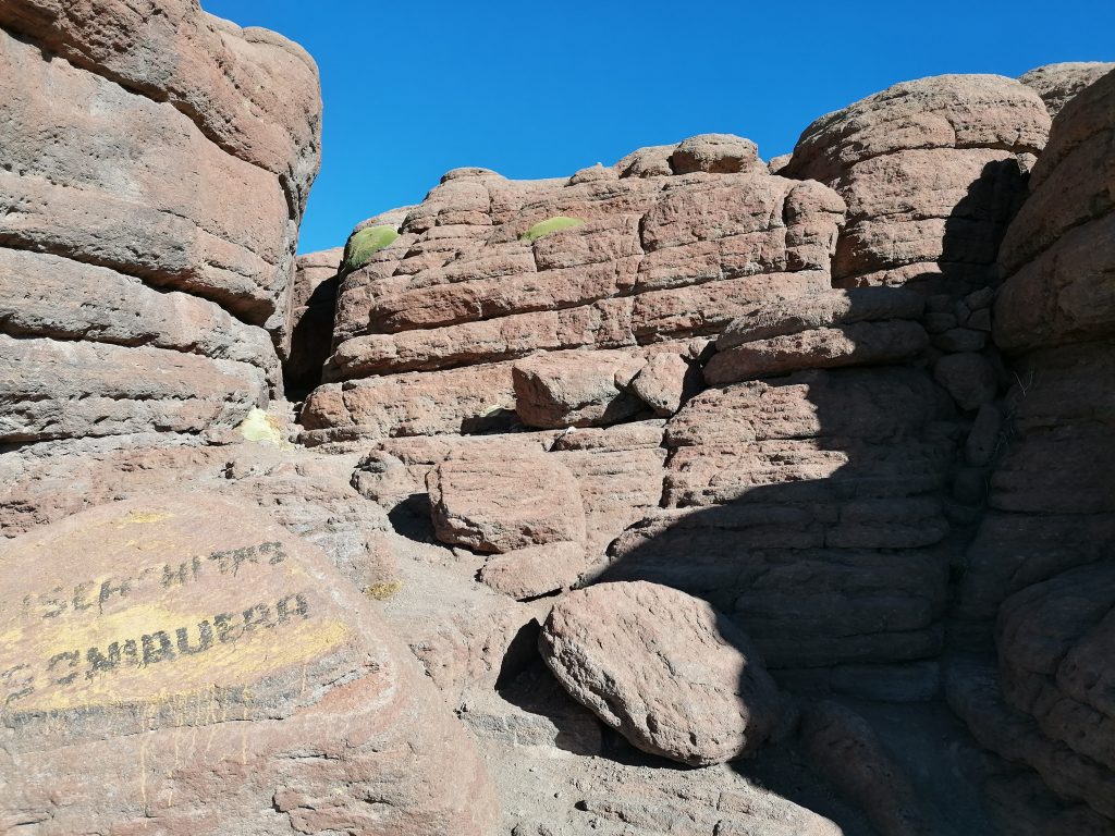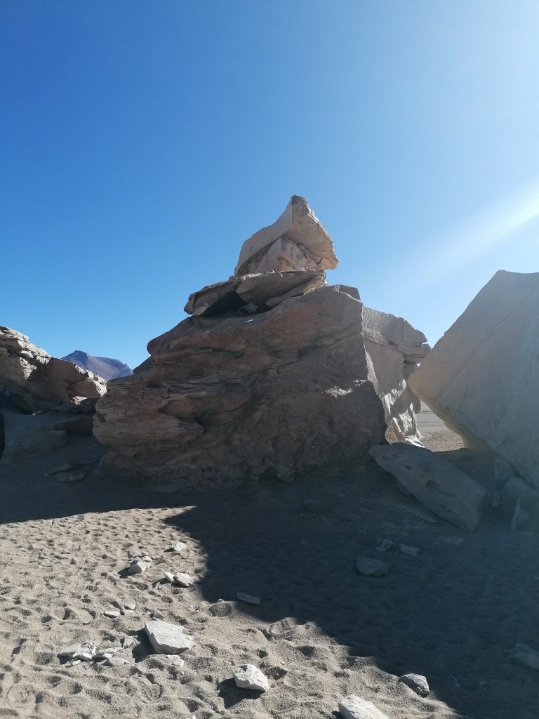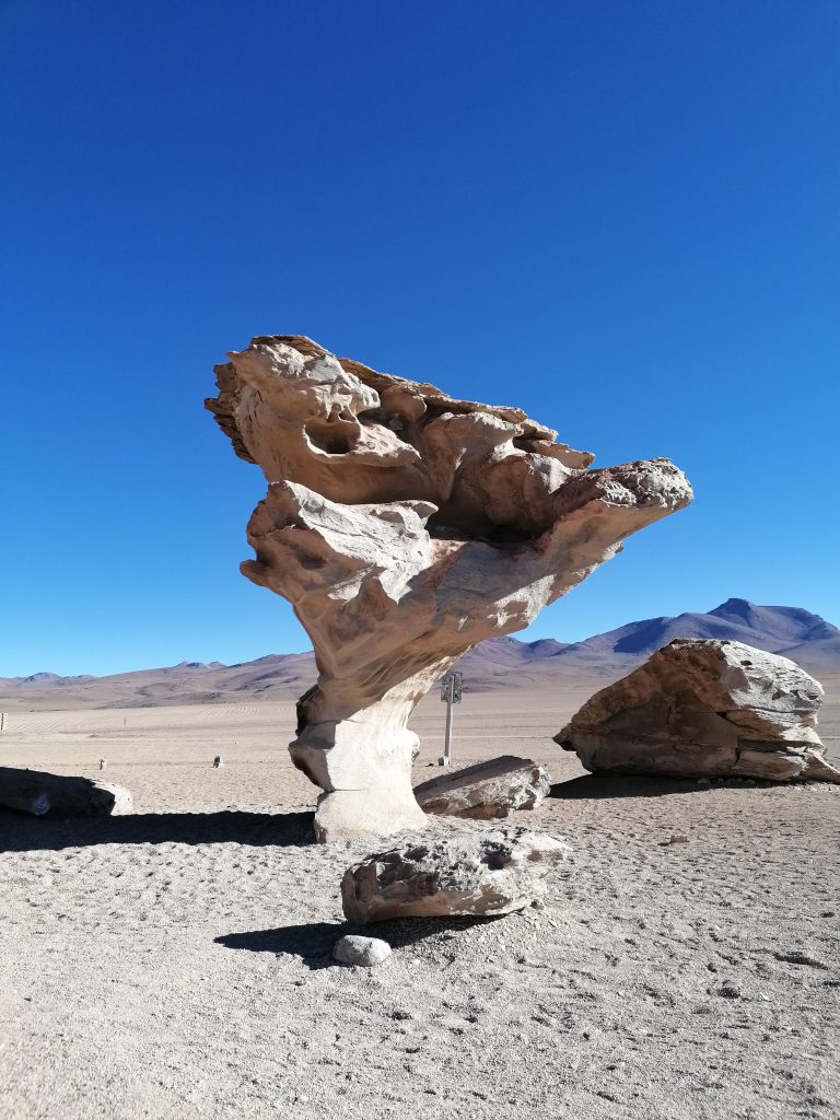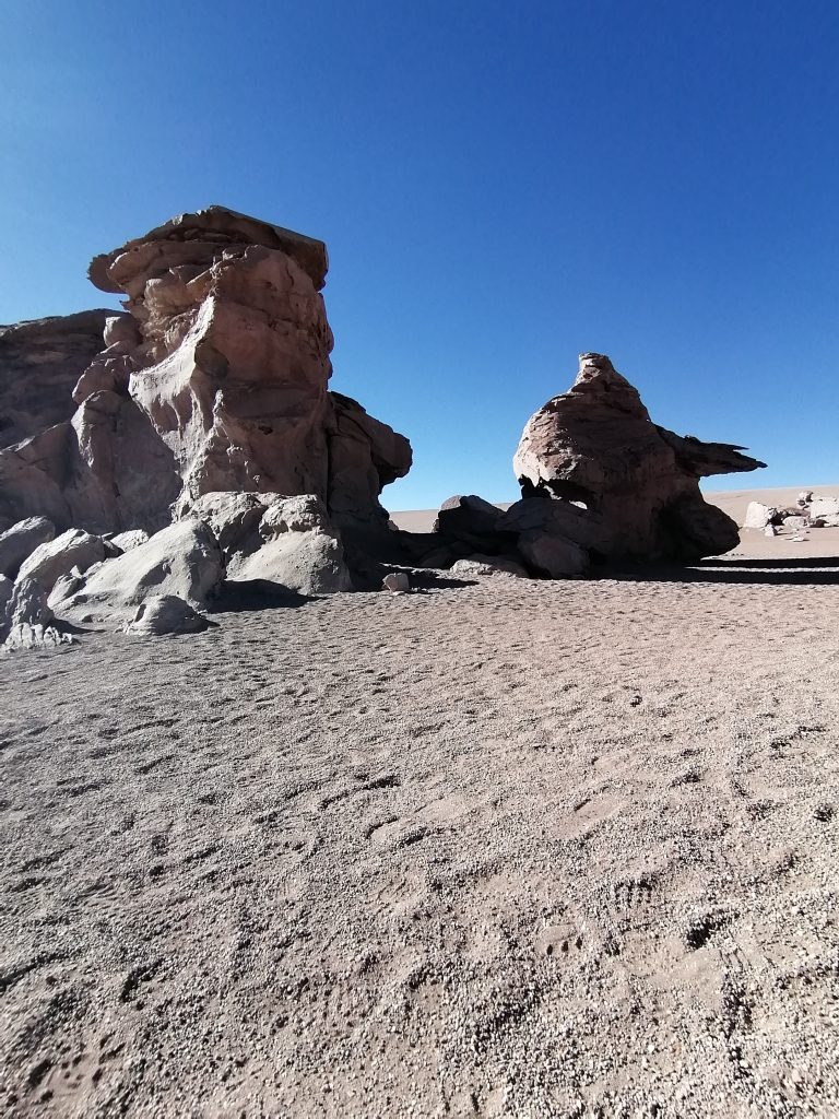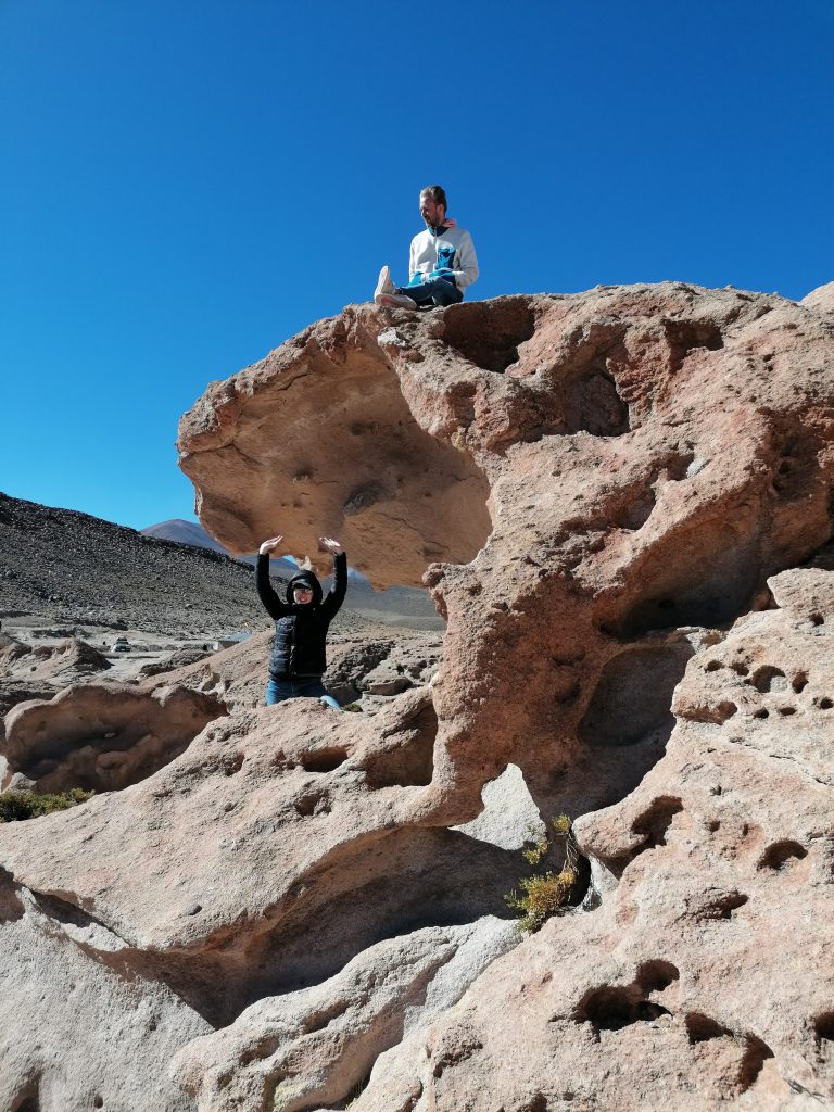 Letzter Stopp ist nahe bei den Steinformationen in der Wüste, wo der berühmte „Arbol de Piedra“ steht, ein Steinbaum. Baum, Pilz, ähnlich wie in San Juan, aber gut, machen wir mal ein Foto… also… darf ich kurz… nur einen Moment… BOAH ALTER?! Die Polen waren schneller da und einer nach dem anderen rennt zu dem Moment um zig Fotos von sich zu machen (am schlimmsten sind immer noch die Nonnen) und keiner wartet eine Sekunde, dass ich ein Bild ohne irgendjemandem von dem Scheißstein machen kann. Wir beschließen es einfach zu lassen, und lieber die Zeit zu nutzen, um uns die schmerzenden Beine zu vertreten. Die anderen Steinformationen sind auch schön.