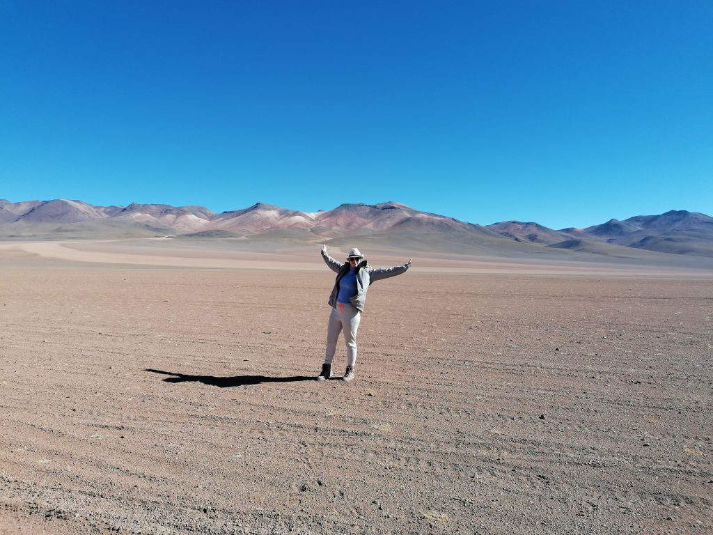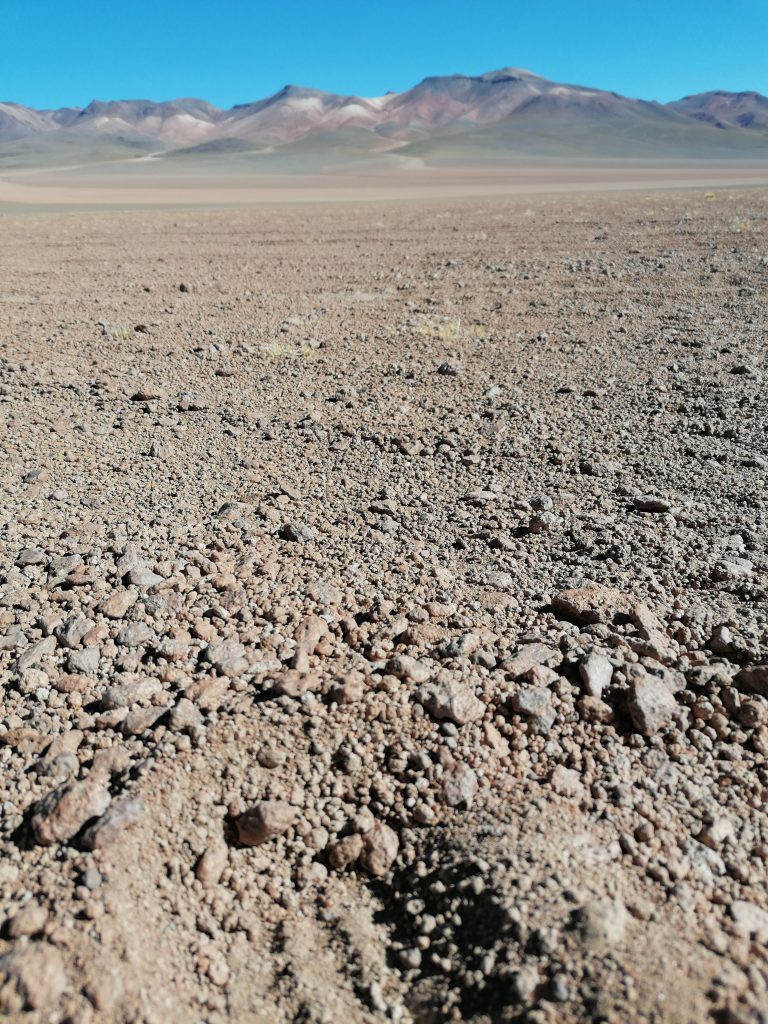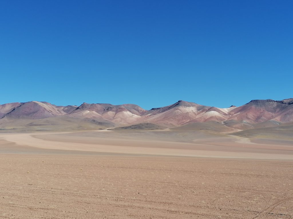 Mittlerweile sind wir richtig in der Wüste. Wir machen noch einen Stopp, von dem aus man die farbigen Berge – die ich aus Nordargentinien schon kenne – sehen kann. Es ist wieder eine Augenweide.