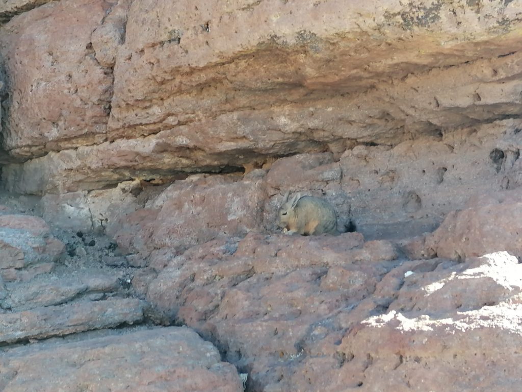 Auf der Insel gibt es Viscachas, das sind große Wüstenchinchillas. Was ist ein Chinchilla, eine Mischung aus Feldhase und Eichhörnchen. Eines sitzt auf einem Felsen, ganz nah, natürlich umrundet von Touris und Handykameras. Ich will gerade näher ran und aus (vernünftiger!) Entfernung ein Bild machen, als ein Vollidiot auf die bescheuerte Idee kommt, das Tier streicheln zu wollen. Bevor er es berührt, hüpft es weg.