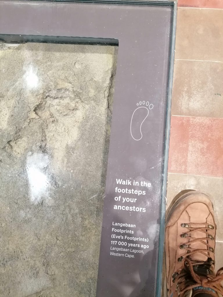 Das Museum allerdings kann ich echt empfehlen. Es ist riesengroß, hat eine umfassende Ausstellung zur Flora und Fauna, aber am schönsten fand ich den Anfang, der die Geschichte der Menschheit von den allerersten Anfängen erzählt: Die Wiege der Menschheit liegt nämlich hier, in Südafrika. In der Nähe von Johannesburg liegen die ältesten Funde unserer Gattung und als ich hier im Museum einen Fußabdruck sehe, der über 100.000 Jahre alt ist, kriege ich Gänsehaut.