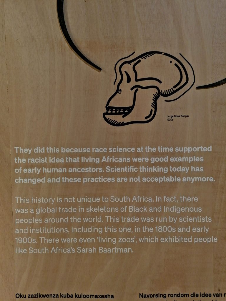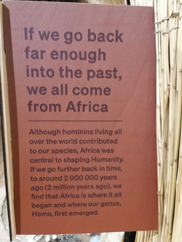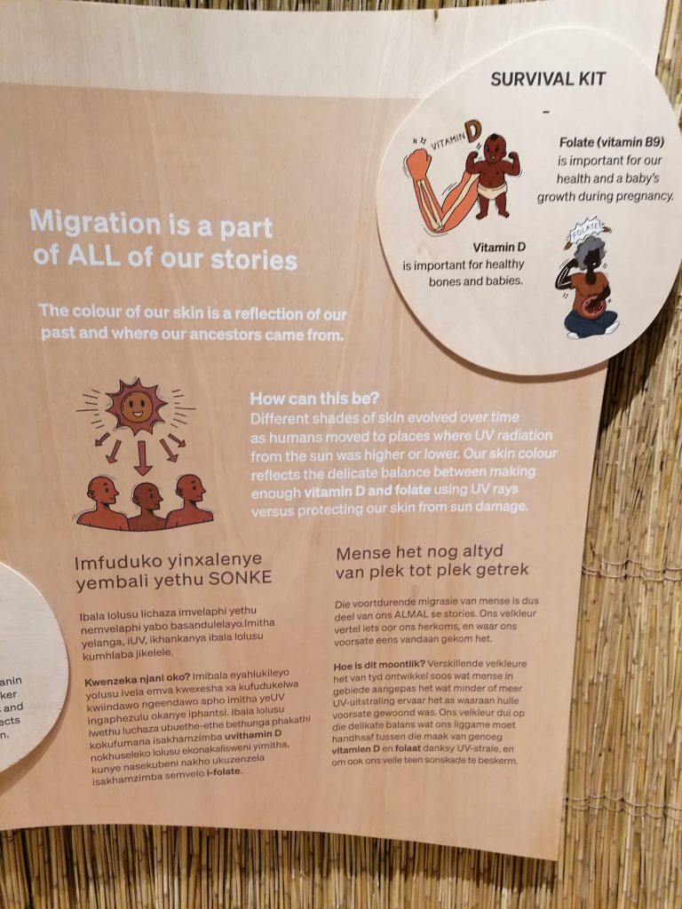 Ich finde diese Ausstellung deshalb so schön, weil das Rassismusproblem weltweit wieder deutlich ansteigt, wo es doch wissenschaftlich so offensichtlich ist, dass wir alle einen gemeinsamen Ursprung haben. Ich selbst kann nicht verstehen, wie man mit unserem heutigen modernen Wissen darüber, dunkelhäutige Menschen als weniger wert einstufen kann, als hellhäutige. Es ist ein Bild, das von Kolonialmächten erschaffen wurde, um ihren Einfall in diesen Kontinent und ihren Raub von dessen Gütern und Menschen zu rechtfertigen und dieser verbrecherische Mythos hält sich bis heute. Vor allem in Südafrika selbst.