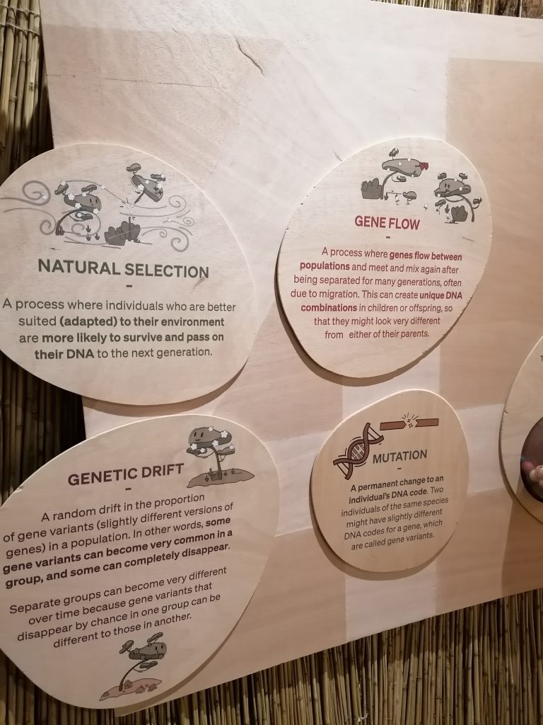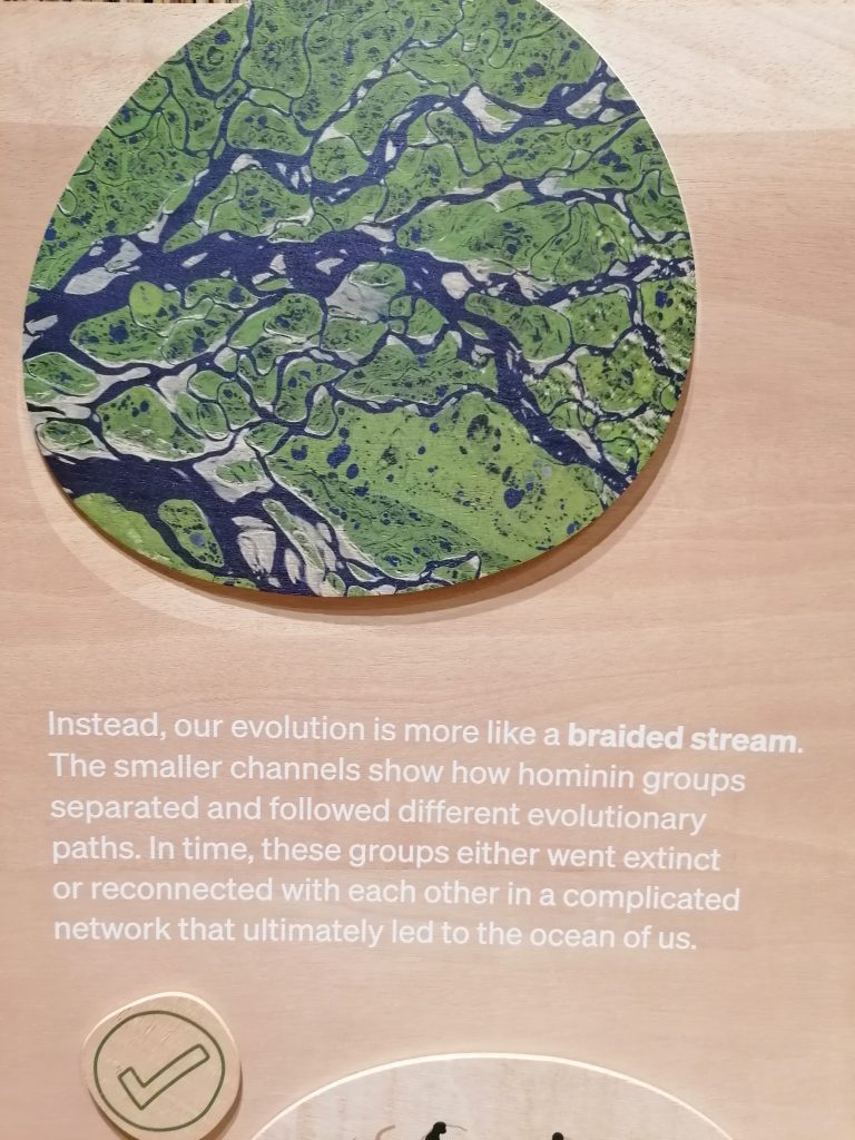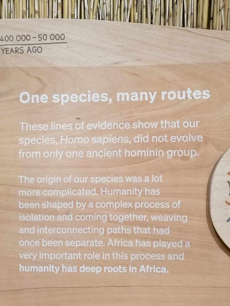 Die Ausstellung erklärt einfach und sachlich die Entstehung der ersten Menschen, folgt den ersten Migrationen durch Afrika und schließlich der Ausbreitung nach Asien, Amerika und Europa. Es erklärt wie sich durch diese Wanderung und Umsiedlungen in andere Gebiete die Hautfarbe und das Äußere verändert hat, um sich der entsprechenden Umgebung anzupassen und die Umweltbedingungen dort besser zu ertragen und erklärt in schönen Worten, dass wir alle zur selben Gattung gehören: Menschen.