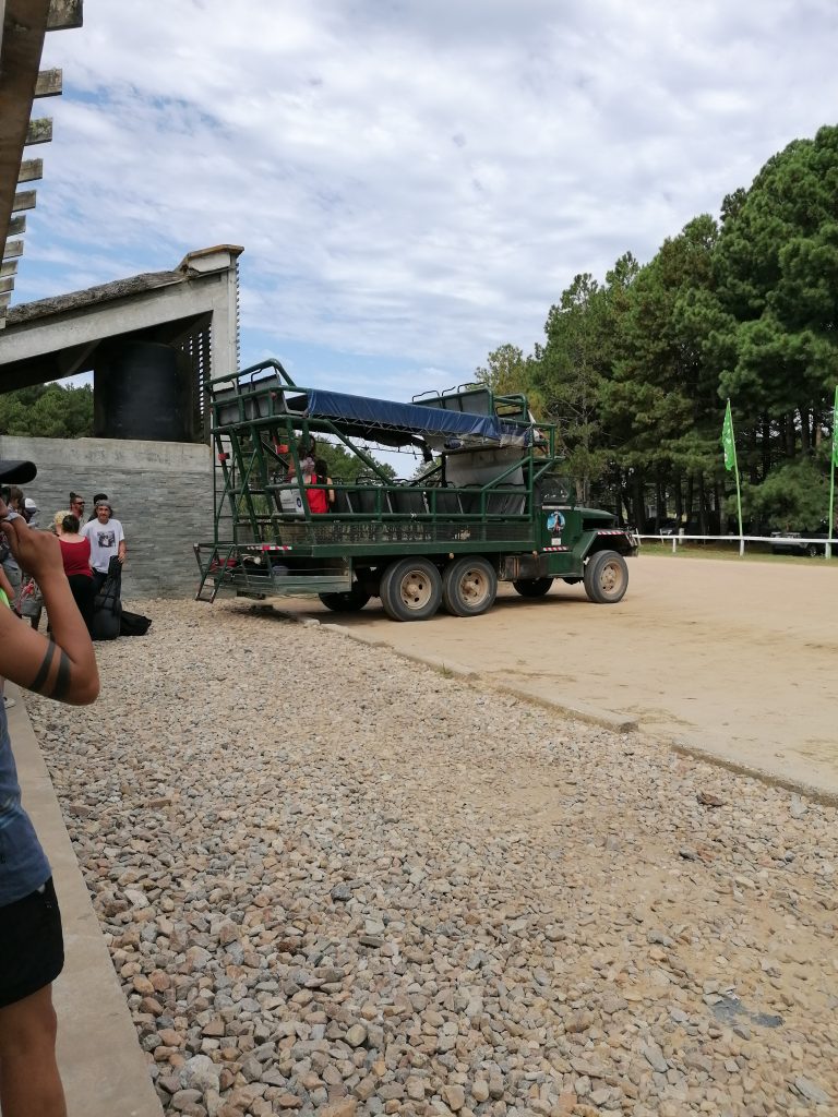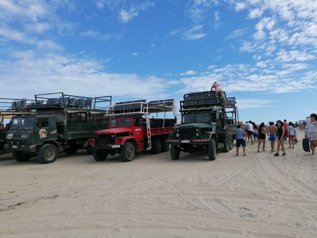 Eineinhalb Stunden Busfahrt später stehe ich mit einigen anderen Touristen am Eingang zum Nationalpark Cabo Polonio. Von hier aus geht es nur mit einem… naja, sagen wir „Shuttle“ in den Ort Cabo Polonio. Man bekommt gleich ein Hin- und Rückfahrtticket, dass zu jeder Zeit einlösbar ist. Der Bus fährt alle Stunde. Eigentlich ganz gut für Südamerika und Land. Aber der Ort ist auch einigermaßen touristisch eben für seine besondere Eigenheit. Das ist meistens auch für mich gut, wo viele Touristen sind, kommt man schon irgendwie über die Runden.
