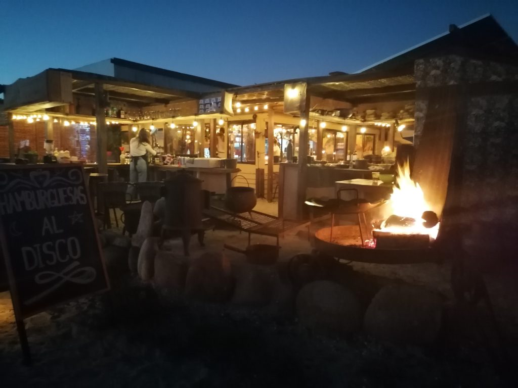 Zurück am Hostel lerne ich Tom kennen, einen Holländer auf Reisen. Schöne Gelegenheit um Englisch zu sprechen. Wir sitzen am Feuer, hören dem heutigen Musiker zu, der uruguayische Klassiker spielt. Viele der Zuhörer singen mit. Ein Mann neben mir stupst mich an und erklärt bewegt, das Lied, das soeben gespielt wurde, wurde auch zur Geburt seiner Tochter gespielt. Ich freue mich total, dass ihn das so berührt, dass er einfach die fremde Frau neben sich anspricht und es ihr erzählt. Danach nimmt er wieder die Hand seiner Frau und sie hören andächtig weiter zu. Ich könnte ewig so am Feuer sitzen.