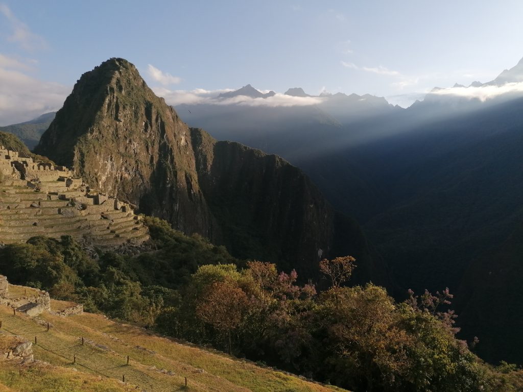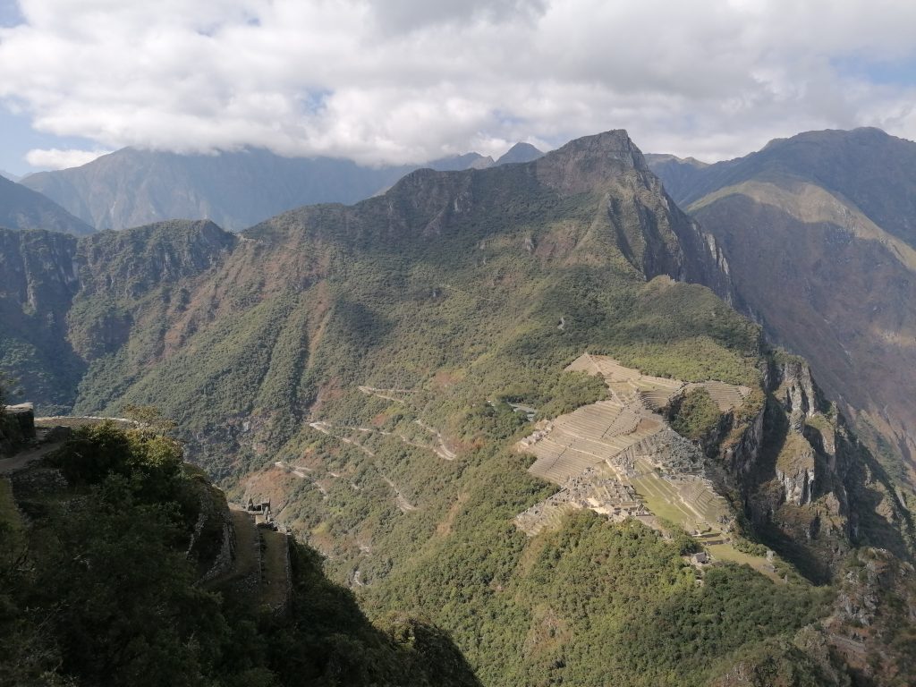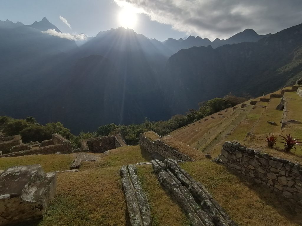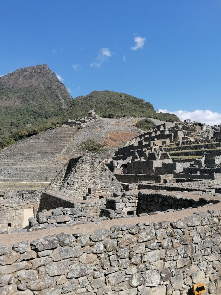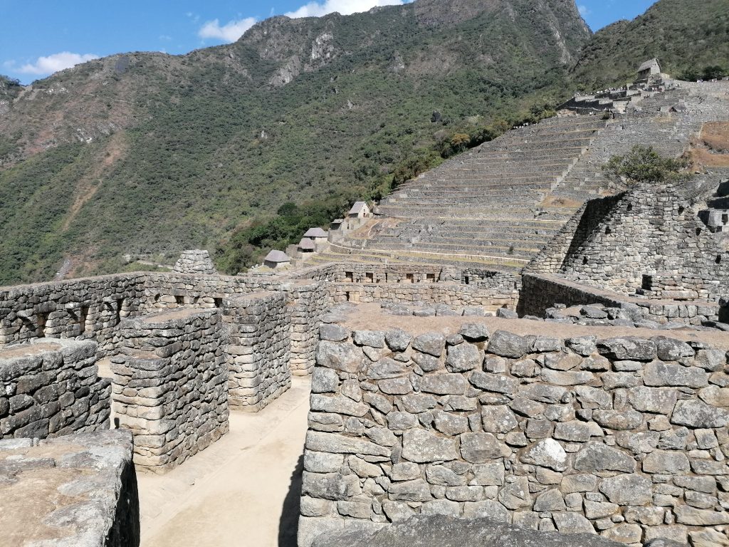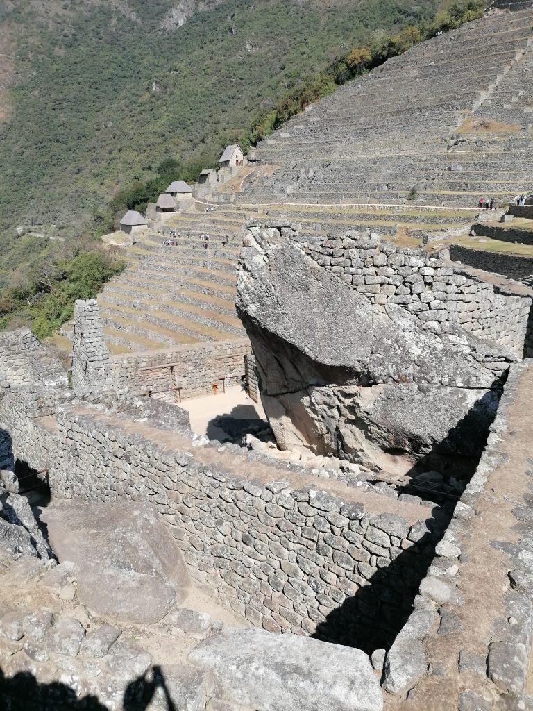 Weiter oben erfahren wir, das Machu Picchu… nie von den Incas bewohnt wurde. Es ist eine  unfertige Stätte. Gelebt haben hier nur Bauern und Bauarbeiter, die das ganze Projekt hochgezogen haben und es sollte eine heilige Stadt für die Incas werden… aber die Spanier kamen dem zuvor. Machu Picchu wurde nämlich nur knapp 100 Jahre vor der Invasion durch die Spanier begonnen und eben nie fertig gestellt. Das Wort „Inca“ bedeutet übrigens König… und wurde auch nur für diesen verwendet. Das „Volk der Incas“ sind die Quechua, die größte heutige Indigenengruppe in Südamerika, lebend hauptsächlich in Bolivien und Peru. Das ist mal eine spannende Info, da hab ich den Begriff ein Leben lang falsch verwendet.