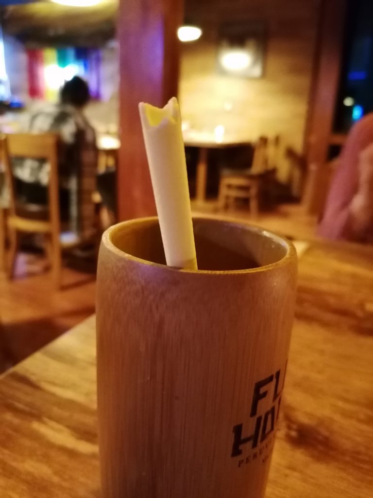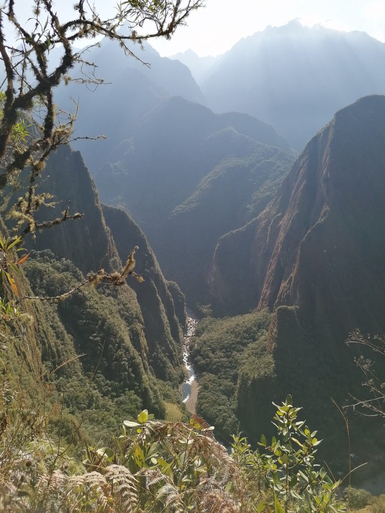 Ales Füße haben heute ganz schön gelitten, sie entscheidet sich für den Bus. Ich kann noch und nehme die Treppen nach unten, die ich fast für mich alleine habe. Dieser Moment der Ruhe in der traumhaften Umgebung ist noch mal ein ganz besonderes Abschiedsgeschenk von Machu Picchu. Unten mache ich noch einen Abstecher zum Fluss, setze mich auf einen der großen Steine und halte meine Füße ins Wasser… Ahhh, was für eine Wohltat. Und die Kühlung ist dringend nötig, ich hab nämlich trotzdem ein paar Blasen, die aber sicherlich am nächsten Tag wieder verschwunden sein werden. Dann gehe ich frischen Fußes wieder zurück ins Dorf, treffe Ale im Hostel, wir essen noch zu Abend, in dem selben Restaurant, die hatten tolle Sachen und sind direkt neben an. Außerdem gibt’s dort essbare Strohhalme. Immer wenn das Essen kam hatte ich schon keinen Strohhalm mehr. War ganz witzig.
