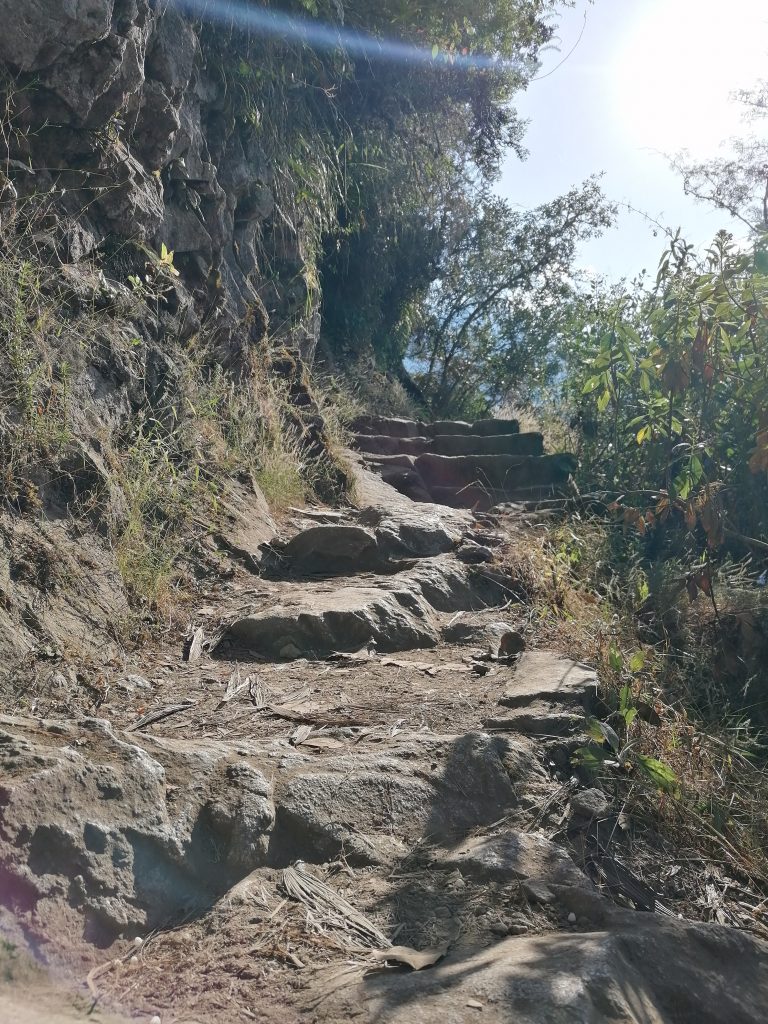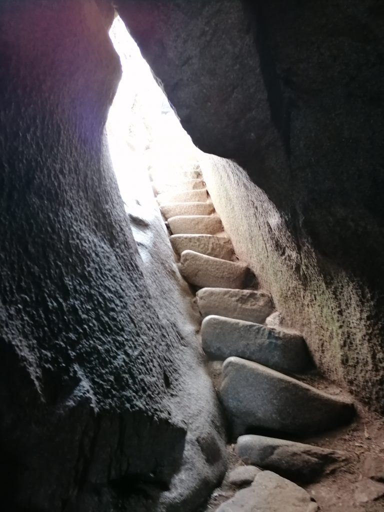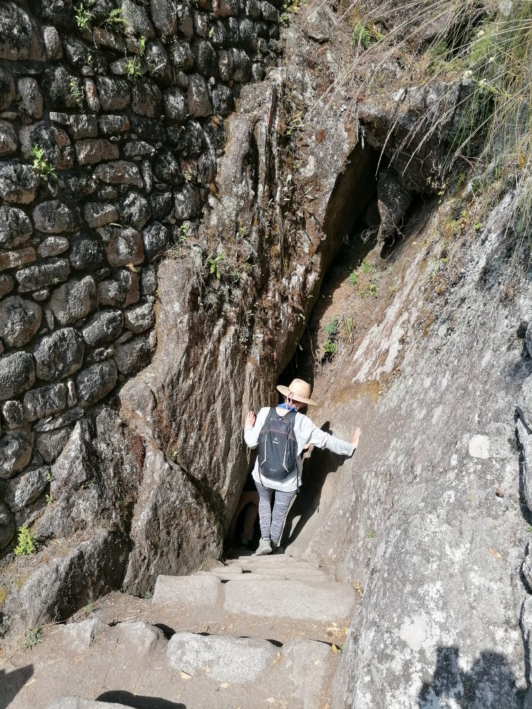 Wieder nach unten geht’s auf der anderen Seite über einen nicht weniger spannenden Weg, bei dem man sich durch eine winzige Höhle zwängen muss, die eindeutig nicht für Europäer gebaut ist.
