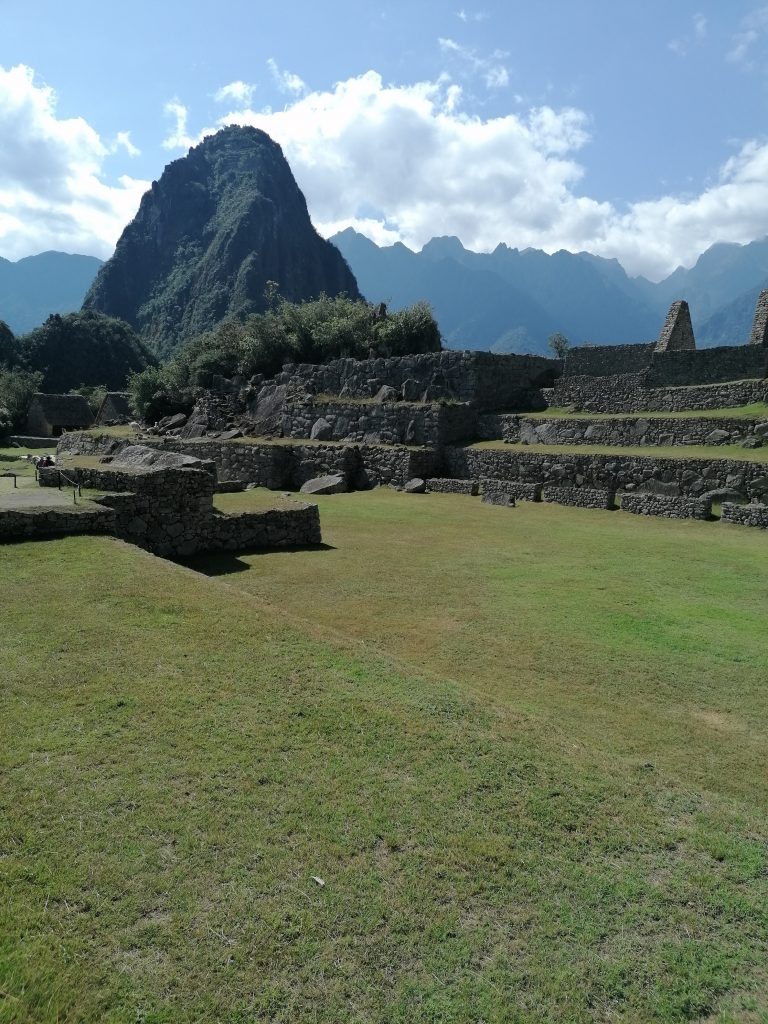 Wir gehen hinein und bekommen erstmal ein paar Grundinfos. Machu Picchu ist eigentlich der Name des Berges hinter uns und bedeutet „alter Berg“. Wayna (Huayna) Picchu, der auf dem wir waren bedeutet „junger Berg“, und der kleine daneben ist „kleiner Berg“ – Huchuy Picchu.  Uns gegenüber gibt es ebenfalls eine kleinen Berg, der „glücklicher Berg“ heißt, weil er von vielen großen umrundet und geschützt wird.