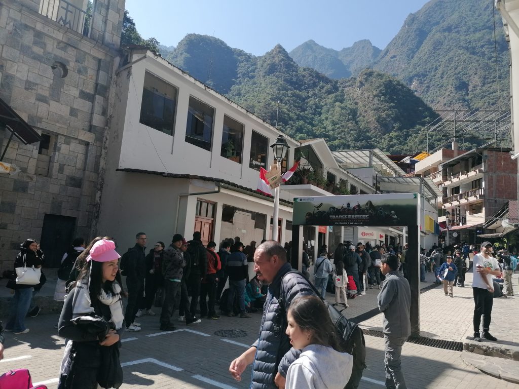 Aber auch für diese Leute sieht es so aus, als würden alle heute noch ein Ticket bekommen. Dann wird es schon Zeit für den Rückweg, wieder über die Gleise. Nach einiger Zeit wird Ale leider ziemlich übel, warum, finden wir nicht raus. Leider bleibt uns kaum Zeit für eine längere Pause, weil der Bus in Hidroelectrica wartet. Ich schnappe mir kurzerhand ihren Rucksack für eine Weile, damit schonmal eine Last weg ist und laufe gegen Ende voraus, um an den Bussen Bescheid zu geben, dass sie etwas warten. Dummerweise verlaufe ich mich dabei einmal, was uns wieder Zeit kostet, aber am Ende kommen wir gerade noch an der Zugstation an, wo unserer Mitfahrgelegenheit wartet… nur um am Restaurant in HIdroelectrica abgesetzt zu werden, wo wir nochmal fast eine Stunde auf den eigentlichen Bus warten. Na, vielen Dank auch, da hätten wir ruhig nochmal eine Pause machen können.