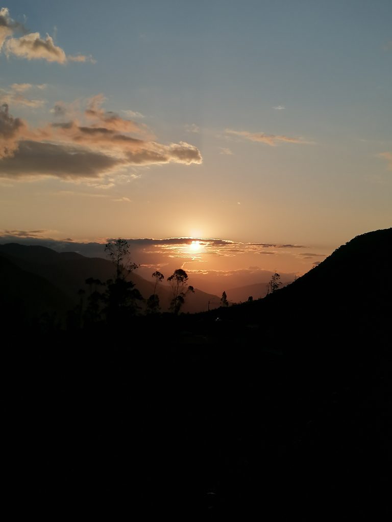 Dann geht es wieder sieben Stunden auf der Death Road zurück mit einem Snack/Pinkelstopp. Genau da geht die Sonne unter, was für eine Bergregion gar kein schlechter Sonnenuntergang ist;