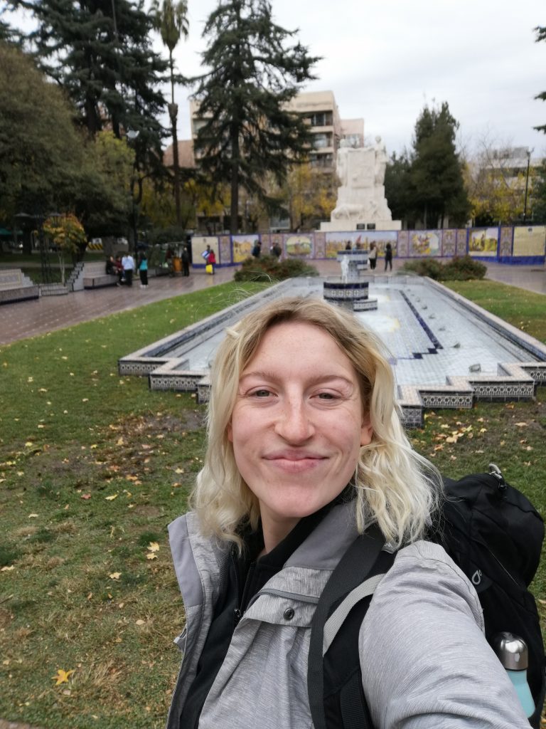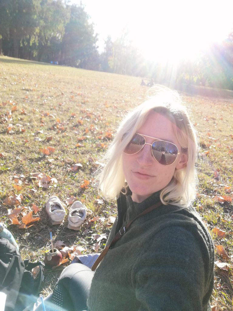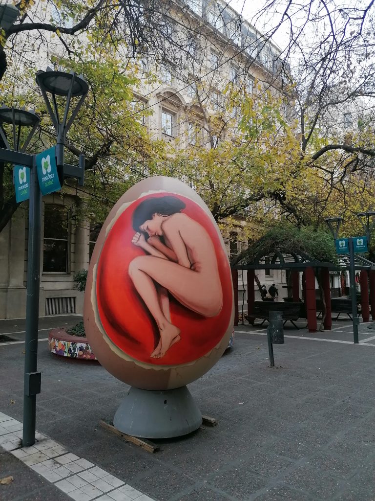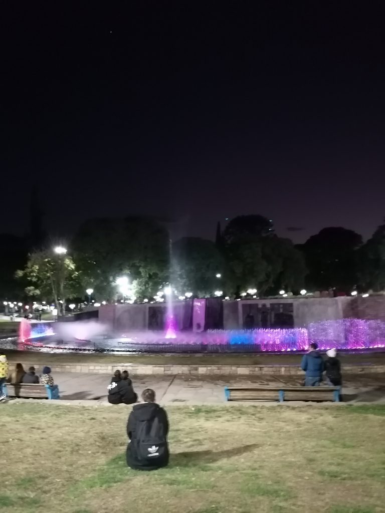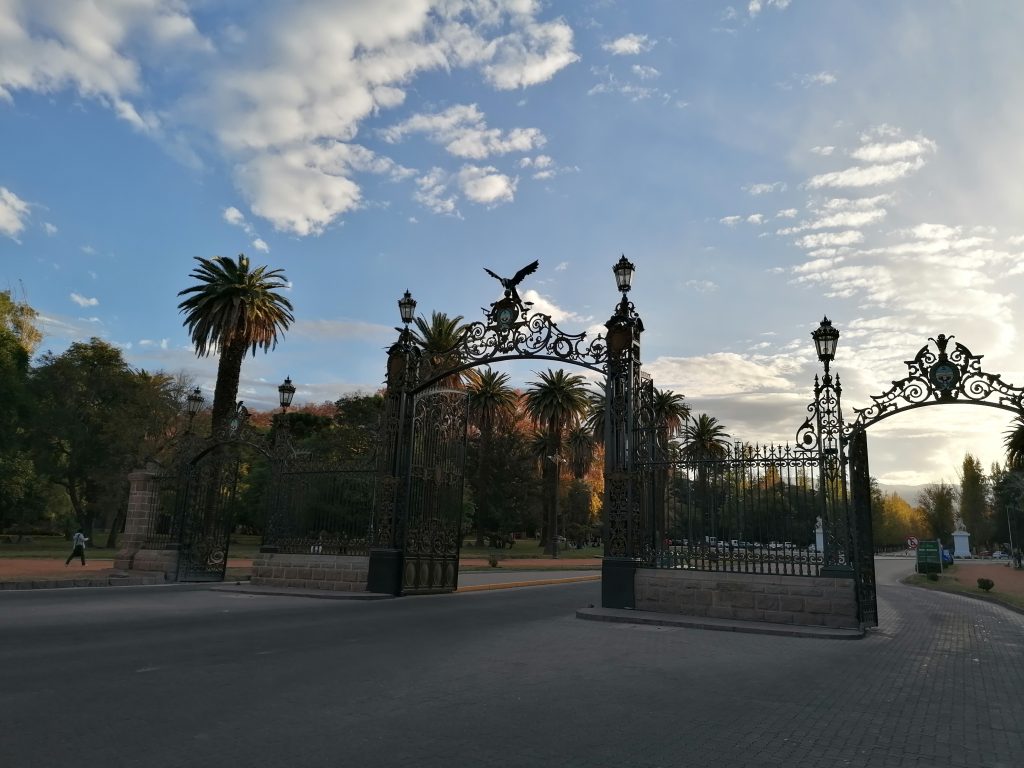Ich beschließe am Nachmittag in den großen Park „San Martin“ zu gehen. Der Park ist so riesig, er hat Straßen, sodass man mit dem Auto oder mit dem Bus zu den verschiedenen Zielen fahren kann. Ich laufe hin und ein Stück weit rein, mein Ziel ist  der Cerro Gloria, ein Hügel mit einem Denkmal im Norden des Parkes. Aber der Park ist so riesig, dass es mich nochmal eine ganze Stunde kosten würde, bis zum Nordende zu kommen. Ich überlege einen Bus zu nehmen, beschließe dann aber, mich schon früher auf eine Wiese zu setzen. Ich suche mir einen schönen Platz, ziehe die Schuhe aus und lege mich in die Sonne. Ciau Kultur, hallo Entspannung.