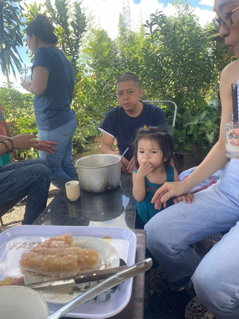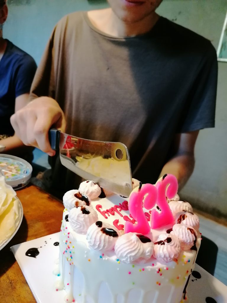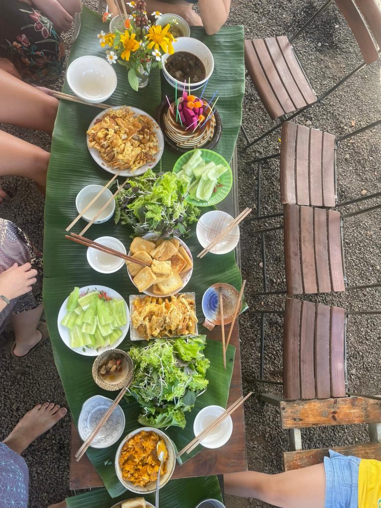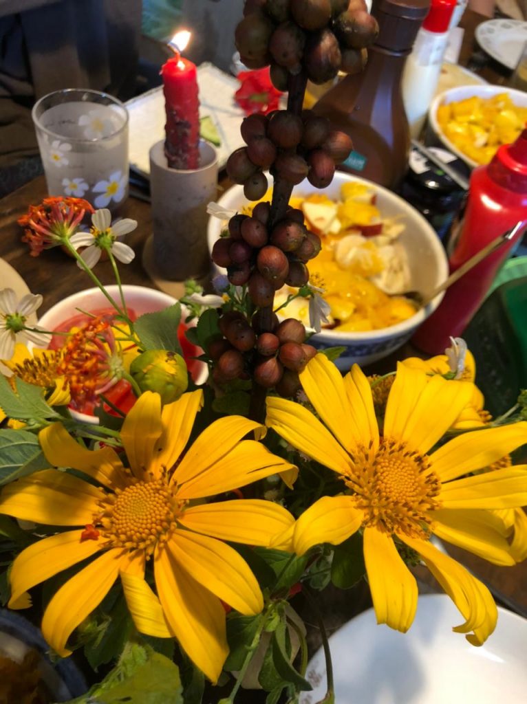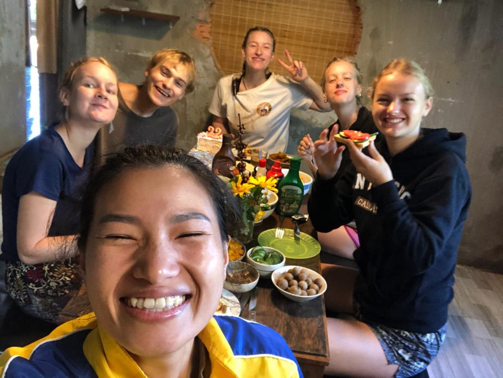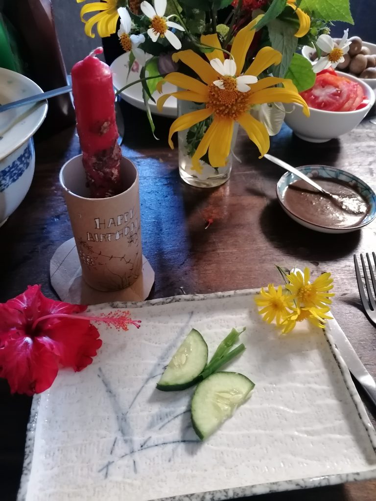 Um Mittag herum hat Thuy ein paar Freunde/Bekannte aus dem Café eingeladen, die für uns kochen wollen. Plötzlich wuselt es in der Küche vor Frauen und Kindern, jeder hat eine Aufgabe zugeteilt… uns Freiwilligen ist das alles ein bisschen zu viel. Eigentlich hätten wir den Tag gerne freihaben wollen, aber das war nicht so ganz, was wir uns unter Erholung vorgestellt haben. Ich entziehe mich dem geschehen recht schnell, mich plagen Periodenkrämpfe und feministische Einstellungen. Wieso? Weil ich fünf Frauen in der Küche schnibbeln, kochen, vorbereiten sehen, während sie gleichzeitig herumrennenden Kinder betreuen… und die Männer dazu sitzen draußen auf der Terrasse, genießen die Aussicht. Ich würde am liebsten etwas sagen… aber es wäre eine große Beleidigung und es ist der falsche Ort für einen Aufstand. Aber so viel zum matriarchalischem Gesellschaftssystem… doch nur eine Illusion?