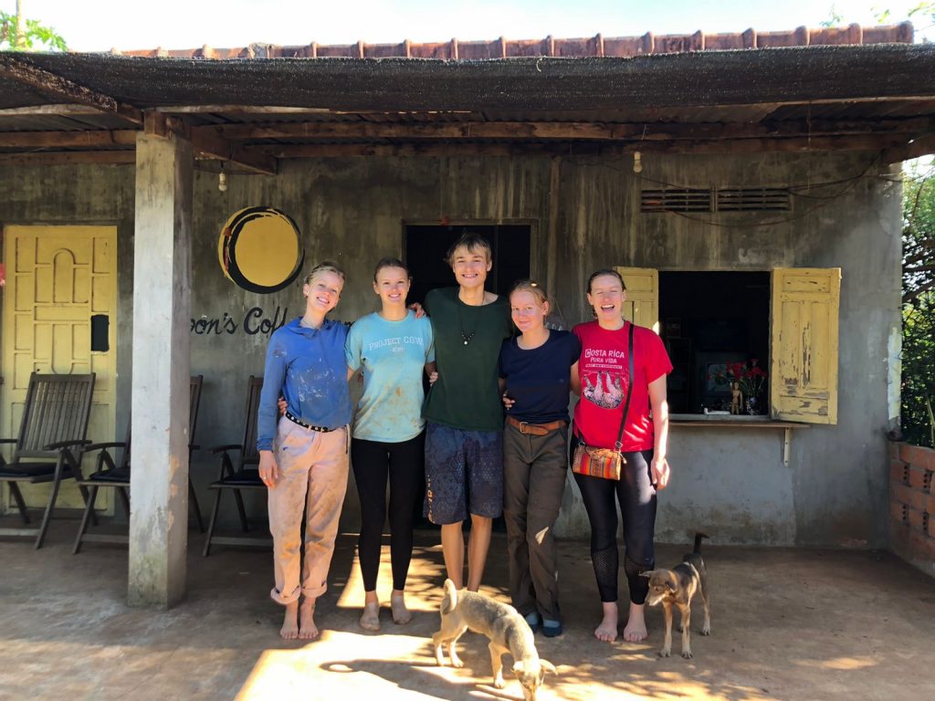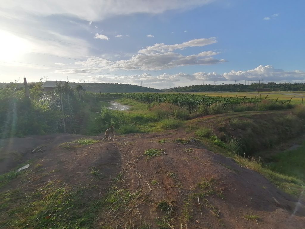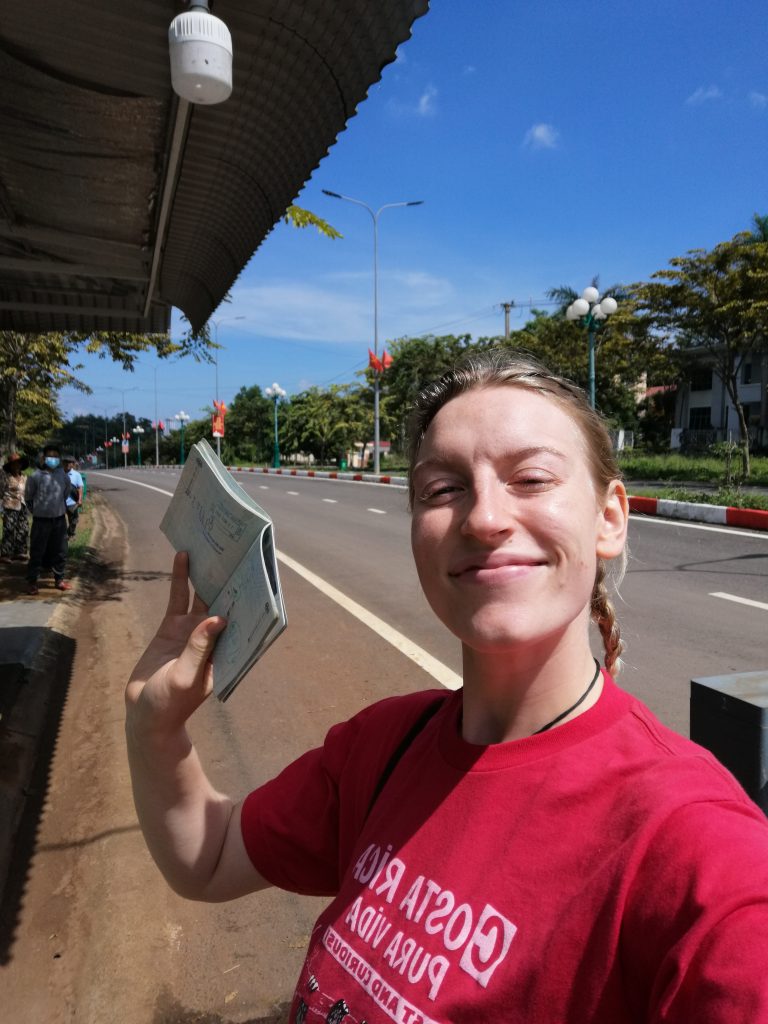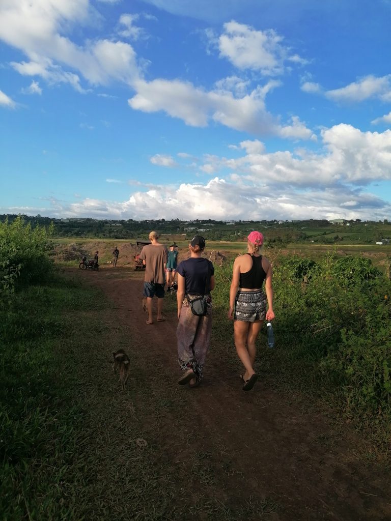 Thuy und ich schaffen es irgendwie uns beide und all mein Gepäck auf den Roller zu packen, dann fahren wir los, raus aus den Kaffeebäumen, rauf auf den Hügel… mit einer kleinen Unterbrechung, in der ich absteigen muss, weil wir in einem Loch hängen und zusammen sind wir zu schwer, um wieder rauszukommen. Dann noch einmal runter in die Stadt bis ins Busterminal. Thuy hilft mir, eine Verbindung Kambodscha zu finden, dann wird es Zeit, mich von ihr zu verabschieden. Wir haben beide Tränen in den Augen. Ich bin ihr so dankbar für ihre (Gast-)Freundschaft und hoffe wirklich, dass wir uns in Zukunft noch mal wiedersehen. Ihre Farm war eine Oase für Familie, Freunde, Ruhe, Kreativität und Naturverbundenheit für mich, die ich dringend gebraucht habe. Ich bin wieder bereit, für die nächste Etappe meiner Reise. Wir verabschieden uns und ich steige in einen Bus. Auf nach Kambodscha.