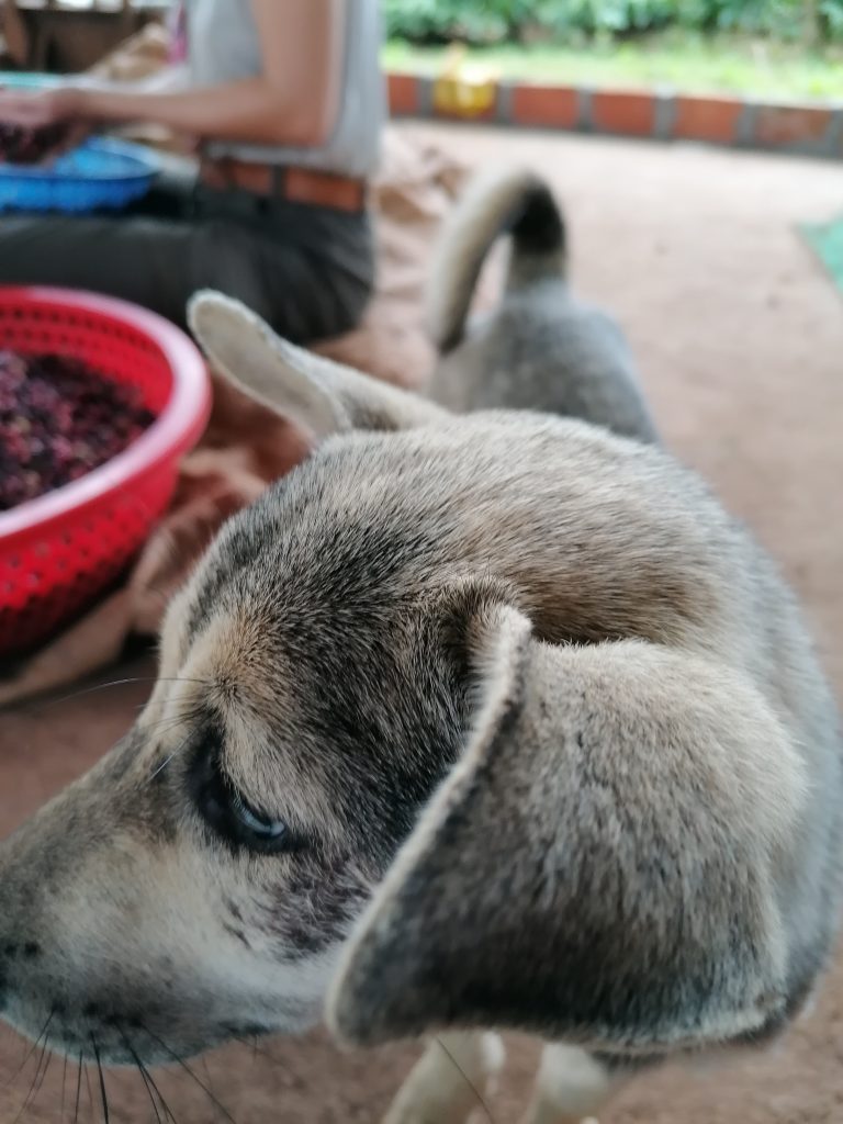 An einem Tag bauen Thuy und ich die Blechwände an die Scheune, in der wir den Honigprozess mit den Bohnen machen. Vorher lagen die Wände nur nutzlos neben der Scheune, eingefallen, ungenutzt, keine Ahnung. Mangels eines Bohrers, binden wir alles mit Draht zusammen, bis wir tatsächlich zwei recht stabile Ecken hinbekommen. Wenn wir alleine sind unterhalten wir uns oft über da Thema Liebe und Beziehung. Thuy bekommt da viel Druck von ihrer Familie, aber sie hat für sich entschieden, wenn es Zeit ist, ist es Zeit oder wenn sie jemanden trifft, der Lust hat, dieses Projekt mit ihr zu gestalten. Aber im Moment ist ihr die Farm einfach wichtiger und sie ist glücklich, so wie es ist. Ich bestätige sie nur zu gerne in dieser Perspektive, besser hätte ich es für mich auch nicht ausdrücken können. Wir sprechen über Kulturunterschiede und ich erzähle ihr von dem tollen Frauenmuseum in Hanoi, in dem ich gelesen habe, dass manche Clans hier matriarchalisch aufgebaut sind. Thuy nickt, ja genau hier, zum Beispiel. Ihre Familie ist matriarchalisch, die Frauen der Familie spielen eine superwichtige Rolle in der Partnersuche. Thuys Nichte zum Beispiel, will ihren Freund bald der Familie vorstellen. Dafür ist ein großes Essen in der Stadt geplant, Thuy ist eingeladen und vor allem viele Frauen der Familie. Ich finde das super! Thuy mein außerdem, wozu Kinder? Ich habe durchschnittlich fünf Volontäre hier herumlaufen, ist doch fast dasselbe?! Ich stimme schmunzelnd zu. Wir nennen sie oft „Mama“.