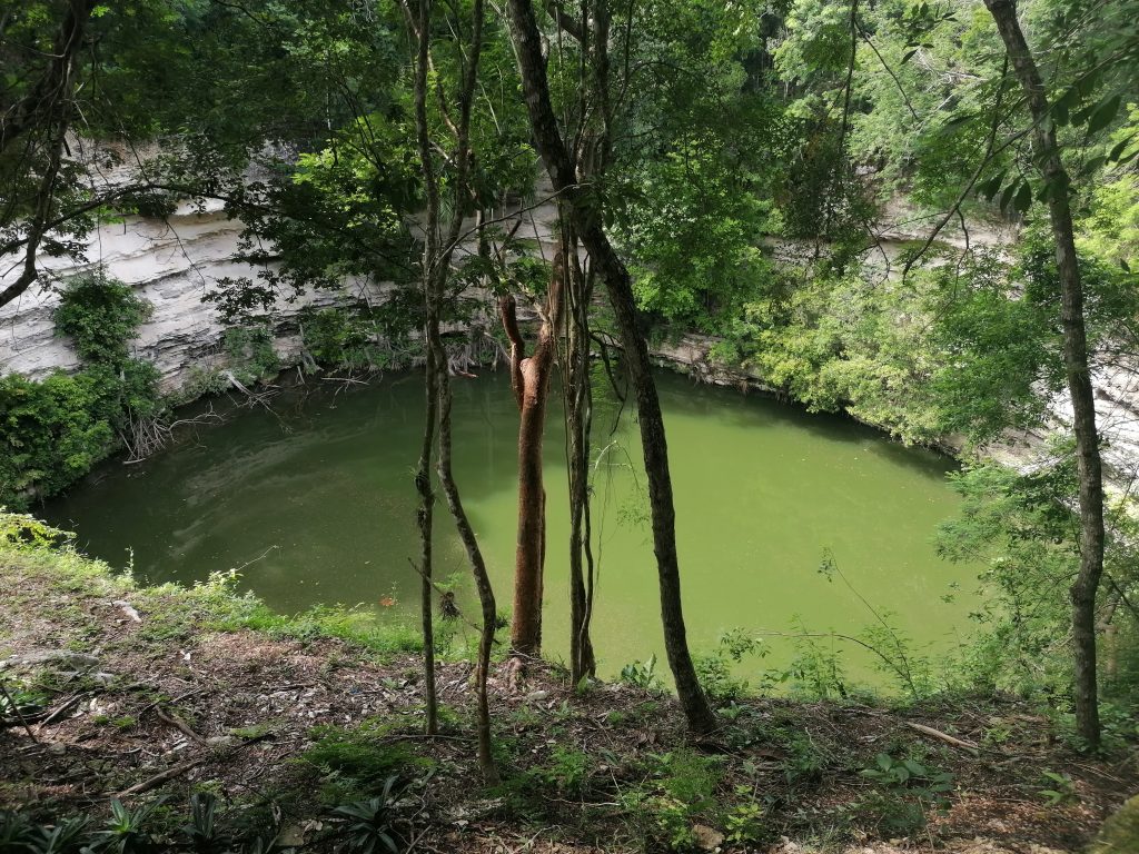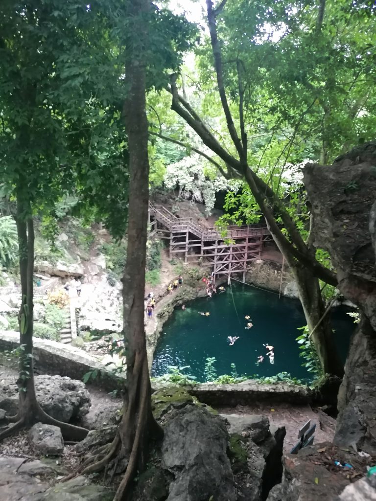 Und zum Schluss besuche eine Besonderheit der Natur, die es hauptsächlich hier auf der Yucatan-Halbinsel in Mexiko zu finden gibt: Eine Zenote! Noch hab ich keine Ahnung, was das genau ist, aber als ich davorstehe kriege ich Gänsehaut: