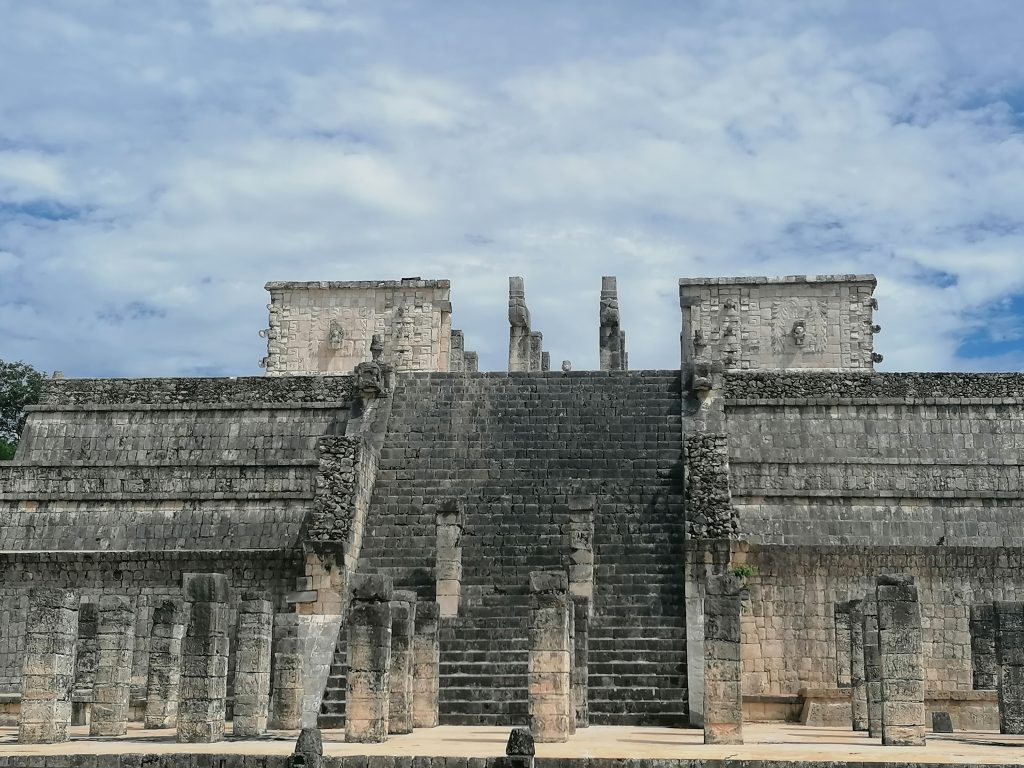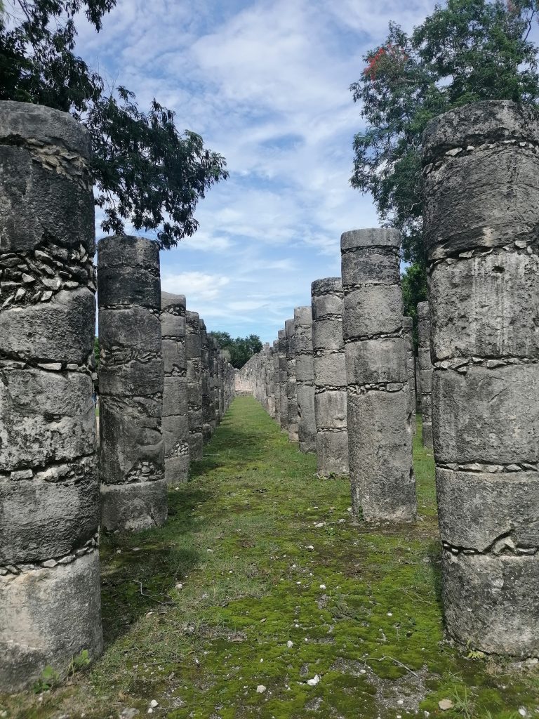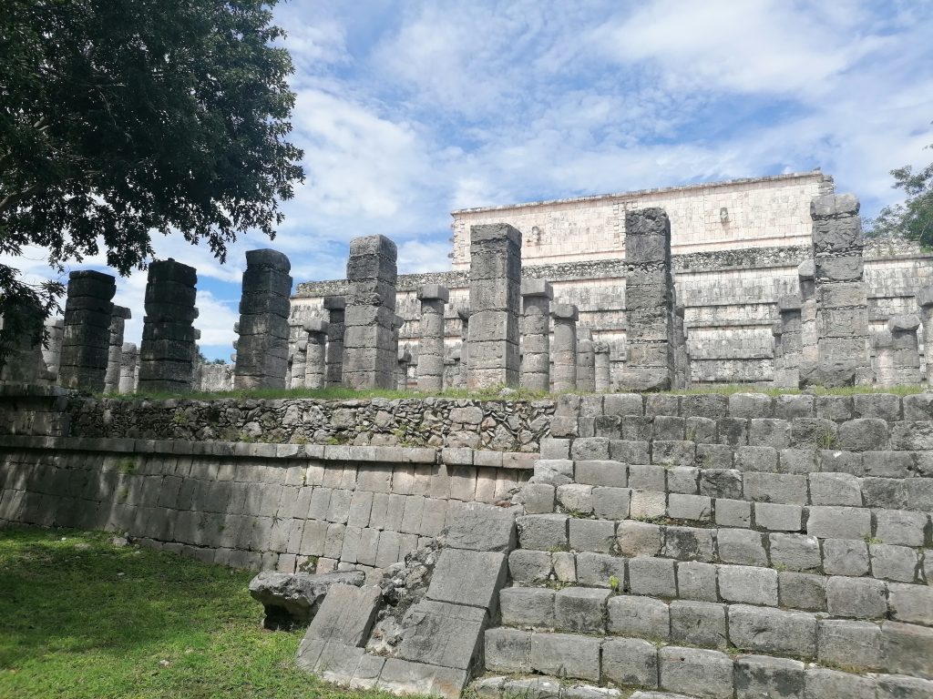 Wir gehen weiter zum Kriegertempel, der mit Säulen übersät ist. Die Säulen stehen für die einzelnen Krieger der Totek, einem maya-verwandten Volk, die den Mayas die Kriegskunst nähergebracht haben. Auf vielen Säulen sind auch Abbilder der Krieger eingraviert, sowie Kriegs- oder Opferrungsszenen.
