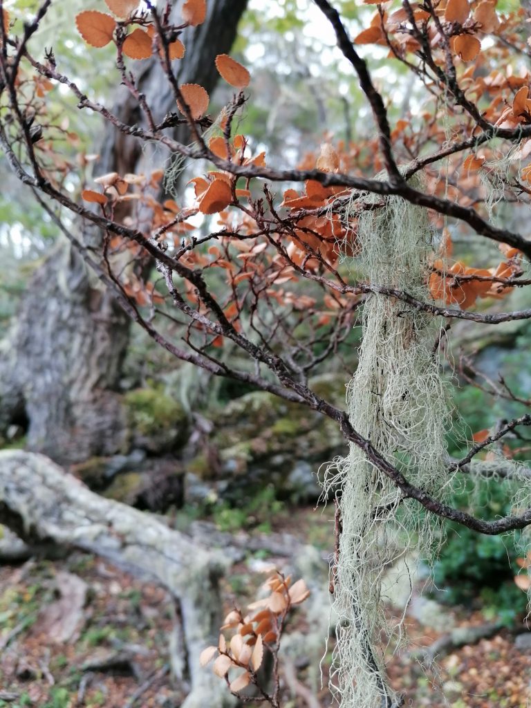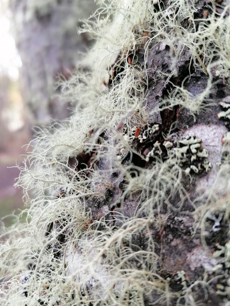 Details kann ich euch nicht viele erzählen. Man läuft einfach vor sich hin und genießt die Natur. Ach doch, da fällt mir noch eine spannende Begegnung ein. Als ich um eine Ecke biege, sehe ich, wie ein Mädel auf einem Baumstumpf sitzt und an ihrem Fuß hantiert. Ein Paar steht davor und beobachtet sie. Zuerst denke ich, sie hat sich verletzt und das Paar hilft ihr die Wunder zu reinigen. Doch als ich näher komme, sehe ich, dass das Mädel sich gerade ein Tattoo sticht. Mitten hier im Wald. Vor ihr sind verschiedene Farben ausgebreitet, sie hat die Nadel in der Hand und sticht vor sich hin. Das Paar guckt ihr noch kurz fasziniert zu dann gehen sie weiter, sodass ich mit starren dran bin. Ich frage sie, was genau es wird und sie deutet auf ein Gewächs an der Rinde, das mir auch schon aufgefallen ist: