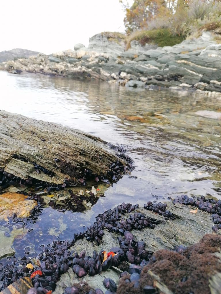 Mir fällt auf, dass Stein in Strandnähe ein bisschen türkis wirkt, eine interessante Farbkombination. Das Wasser ist wie immer kristallklar.