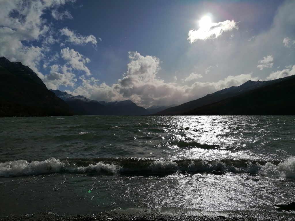Dafür schaffe ich den letzten Streckenabschnitt leider nicht mehr, hab dafür aber umso länger Zeit, einen wunderschönen wilden See zu beobachten, den Lago Acigami. Wild im wahrsten Sinne des Wortes, der Wind bläst in voller Stärke und der Wellengang ist unglaublich. Aber auch wieder unglaublich schön:
