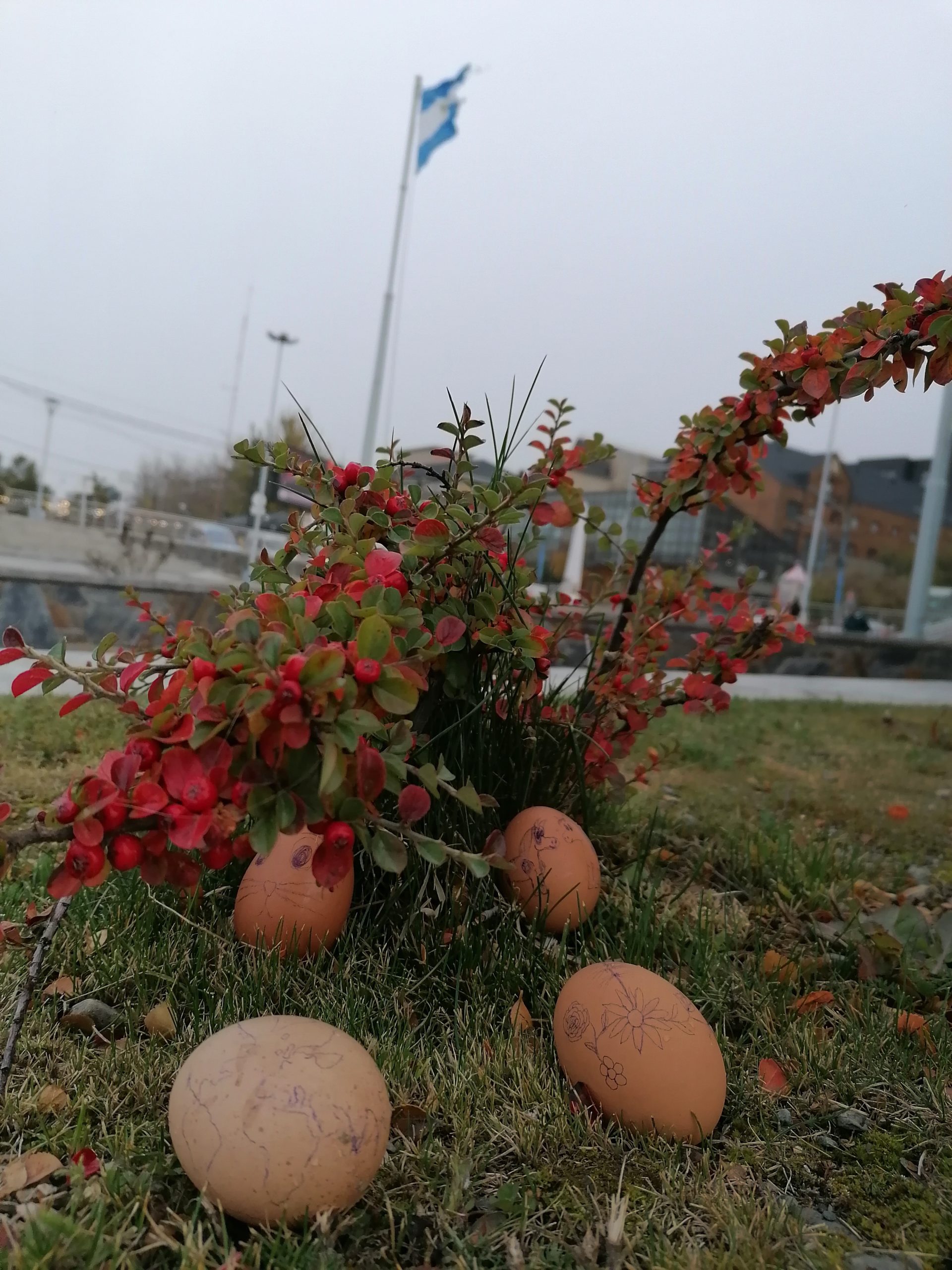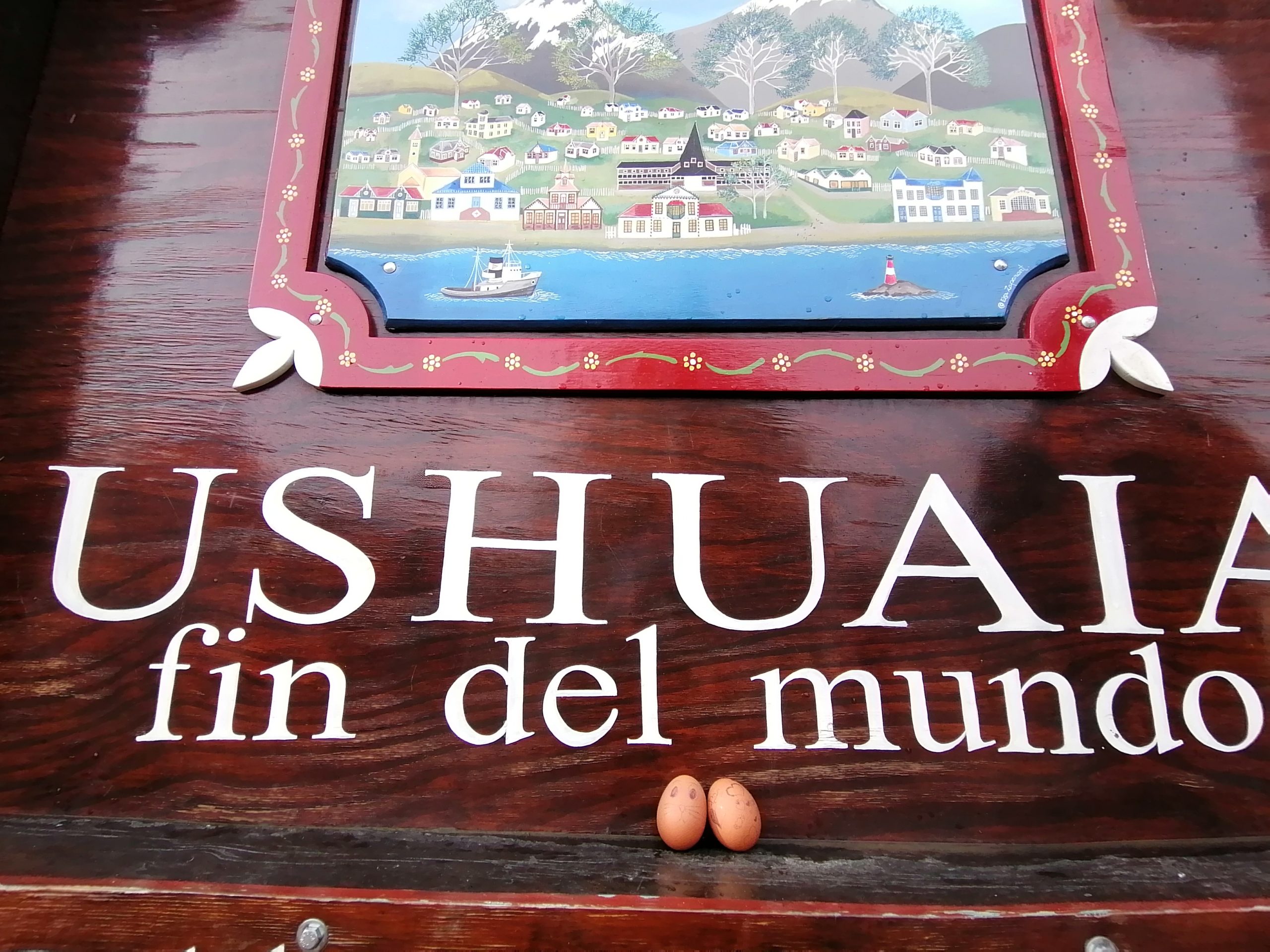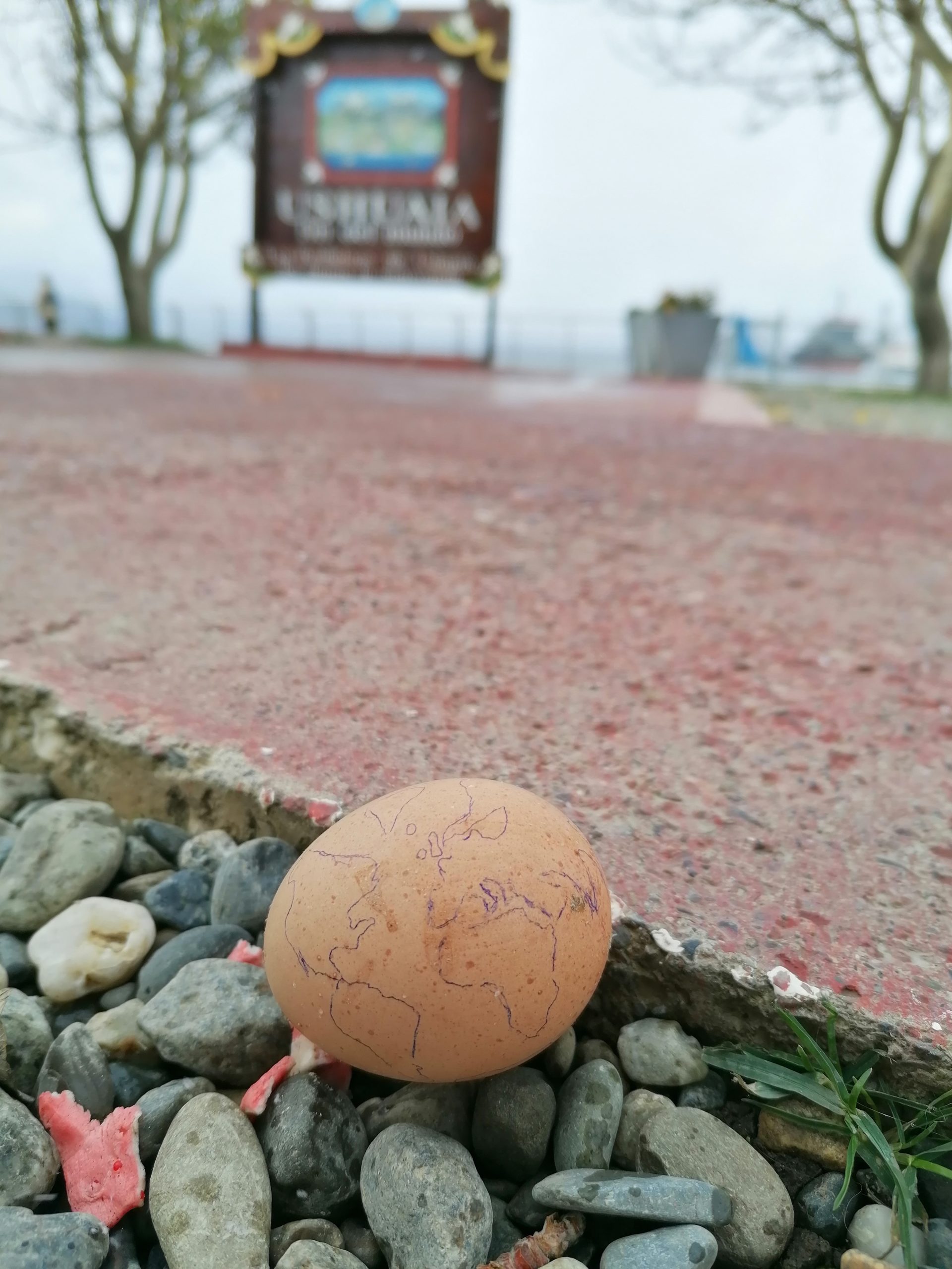 Zuvor bin ich aber nochmal mit Lukas verabredet, ich will meine Ostereier in der Stadt noch ein bisschen in Szene setzen, um ein paar kreative Grüße in die Heimat zu schicken: Der Osterhase war dieses Jahr auch in Ushuaia unterwegs.