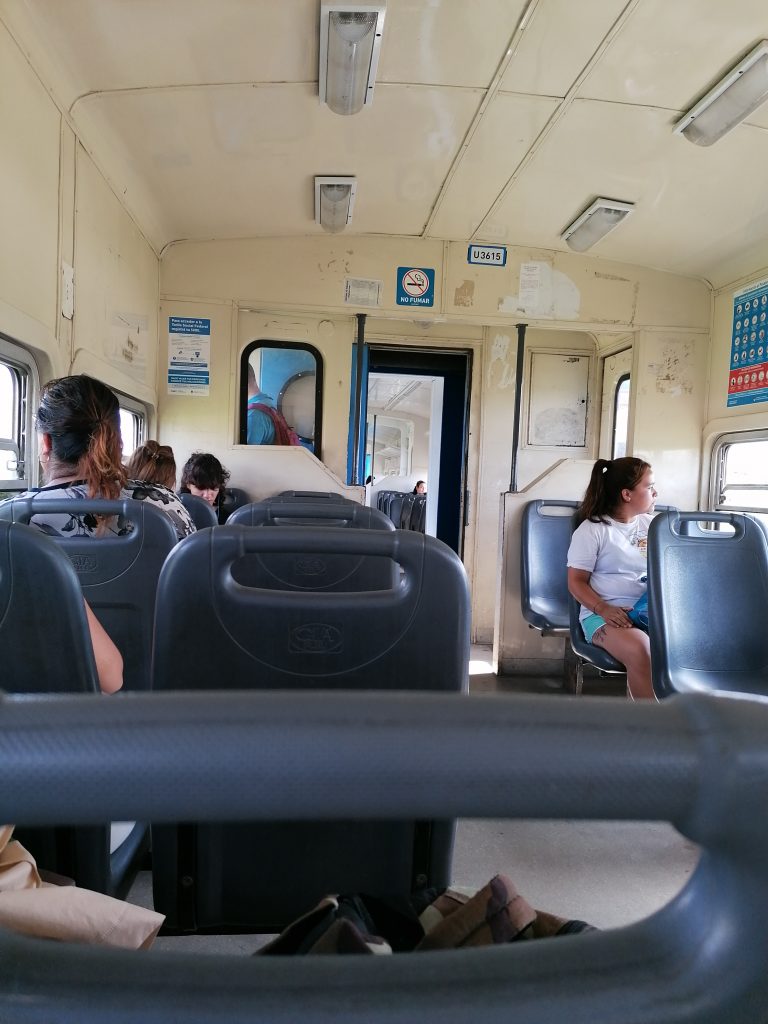 Dort muss ich tatsächlich nochmal zahlen, da es ja ein anderer Zug ist. Gut, dass ich die 200 Pesos aufgeladen habe, hier draußen muss man nämlich in Kiosken und Supermärkten aufladen… das kann mich wertvolle Zeit kosten. Gut, in dem Fall eigentlich nicht, ich muss nämlich warten. Zusammengedrängt mit vielen anderen Passagieren warten wir ca. eine halbe Stunde auf den Anschlusszug. Der übrigens auch ein Phänomen für sich ist. Keine Türen, halbe Fenster, super laut, alte Hupe und natürlich keine Anzeigen oder Durchsagen. Man muss den Komfort, den man hat wirklich schätzen, was danach kommt, kann immer schlimmer sein. Das ist so eine Geschichte.