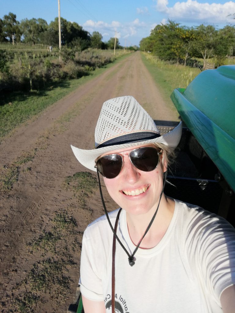 „Das ist jetzt echt das letzte Mal, dass du mich in so eine Scheiße reinreitest. Ich mach so was nicht nochmal mit! Nur weil du ein paar Pferde streicheln willst, GEH IN DEN ZOO VERDAMMT NOCHMAL!!!“ Verschwitzt, schmutzig und müde gehe ich weiter die staubige Straße entlang, während ich das Gefühl habe, meine Schultern brechen unter dem Gewicht der Rucksäcke gleich zusammen. Google Maps sagt, ich laufe noch etwa eine Stunde bis zur Farm. Bereits nach 10 Minuten wurden Rucksäcke schwer, der Tag hat mich bereits einiges an Anstrengung und Nerven gekostet Die Schimpftirade meines bösen Zwillings scheint mir angemessen. „Was ist falsch an einem schönen bequemen Sofa, einem Glas Wein, Gemüselasagne und Netflix?! Du hattest es so schön! Aber nein, die Abenteurerin will ausbrechen, will was erleben und was haste jetzt davon? Wir stehen hier mitten in der gottverdammten PAMPA, es wird bald dunkel und wir laufen noch ewig bis wir am Ziel sind!!! Danke, Abenteurerin, danke für nichts!“ Ich spüre einen Stich am Arm und schlage hin. Zu spät. Leo hatte mich schon gewarnt, dass es gerade schlimm ist und die ersten Bisse habe ich schon kassiert.  „Ach und von Moskitos werden wir auch zusammengestochen. Sonst noch was?“ – „Jetzt krieg dich mal wieder ein“ antwortet der gute Zwilling, ich setze die Rucksäcke ab und suche das Mückenspray raus, „Wir sind schon so weit gekommen, der Rest wird schon. Vielleicht haben wir ja nochmal Glück?“– „Ja genau, weil plötzlich ein Traktor auftaucht und dich zufällig mit zu Farm nimmt, oder was?!“ Ich schließe die Augen, atme tief durch, während hinter mir ein Motorgeräusch immer lauter wird… J