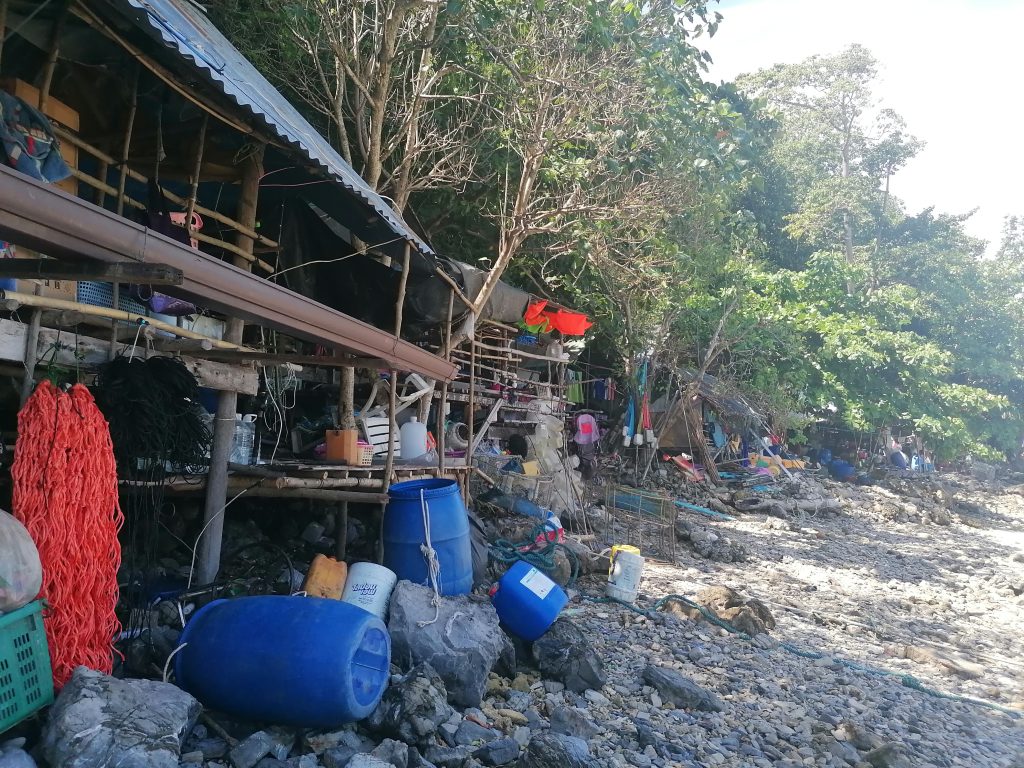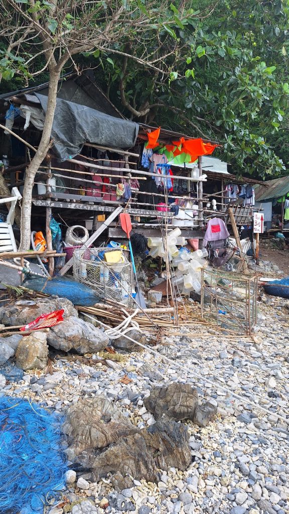 Ich laufe links an den Felsen entlang weiter und habe Glück mit der Zeit: Bei Flut ist es meiner Meinung nach nicht möglich, hier durchzukommen. Danach stehe ich vor einem winzigen Fischerdorf, nicht mehr als 6 Hütten, nur Einheimische, viel Plastik und viele Katzen.