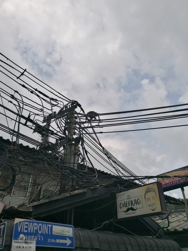 Dabei fällt mir ein ungewöhnlicher Anblick ins Auge, der hier wohl ein sehr gewohnter Anblick ist. Das was ich sehe, gibt es in Deutschland schon auch… nur sind da meistens Vögel auf der Leitung.