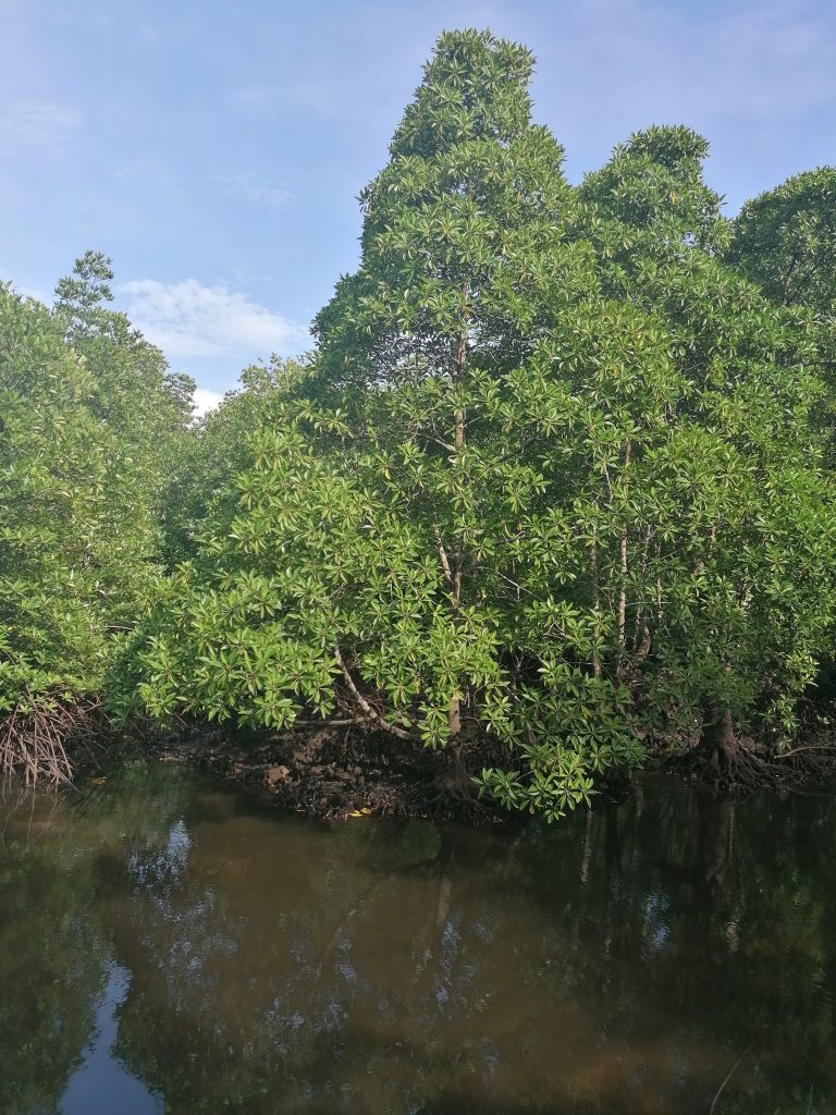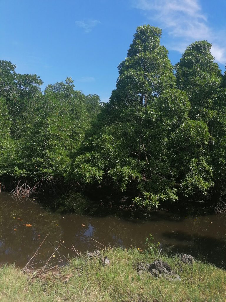 Die kleine Straße ist so gut wie unbefahren und führt an einem kleinen Mangrovenfluss entlang, in dem bestimmt riesige Schlangen und weiß Gott noch was schwimmen.