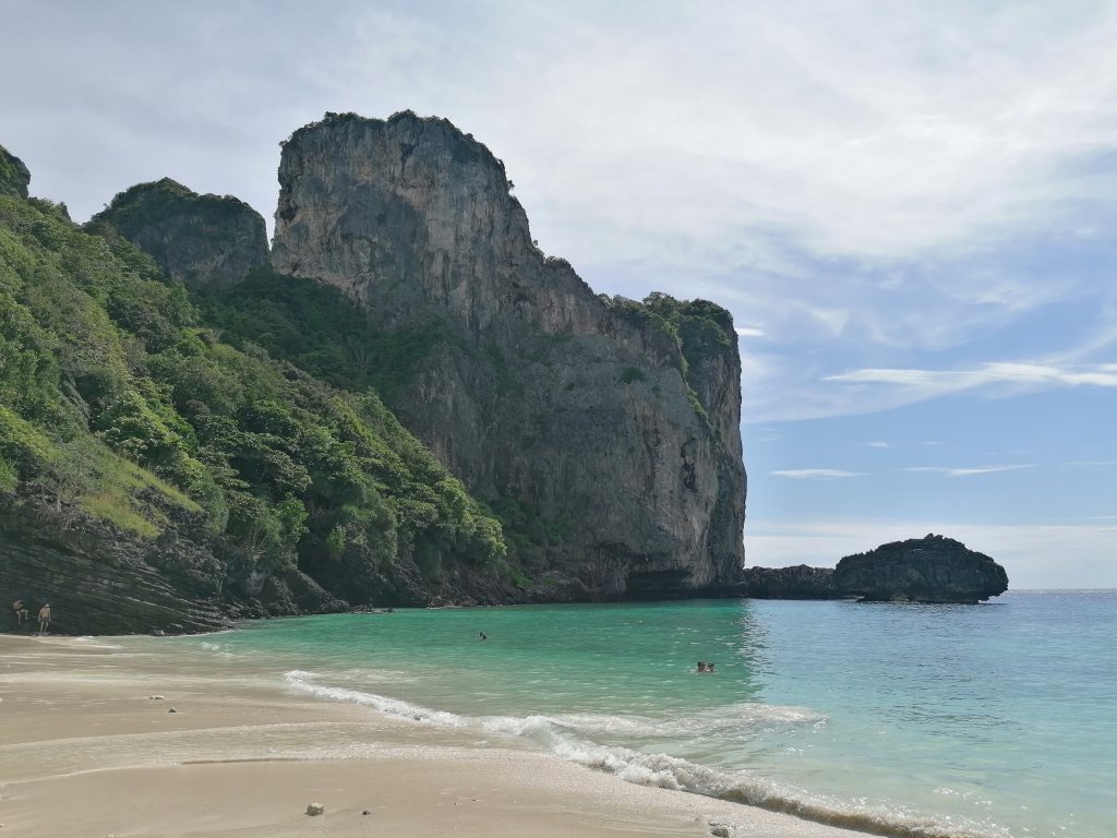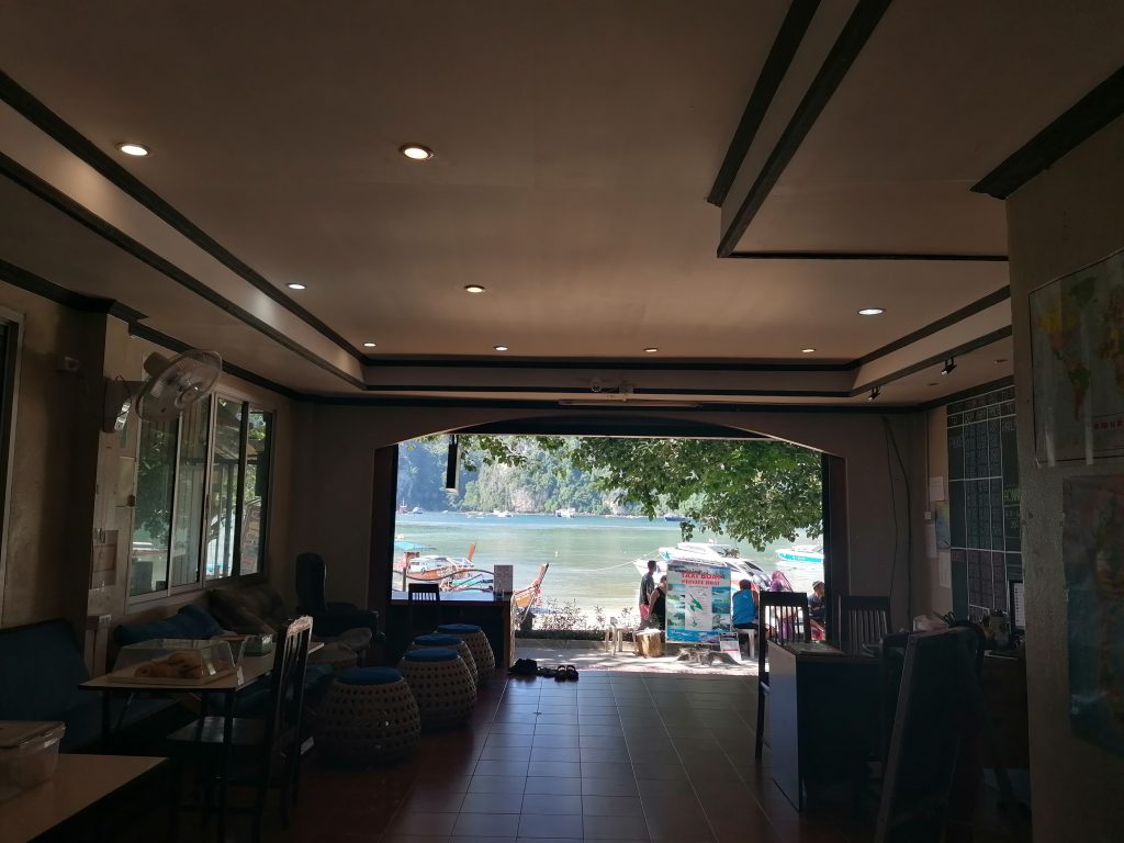 Irgendwann habe ich mich entschieden, einfach mit Ko Phi Phi anzufangen. Ich kannte den Namen, (sage aber immer noch Ko Phi Phi und nicht Ko Pi Pi, wie es eigentlich heißt) von Krabi dauert die Fähre nur anderthalb Stunden und irgendwo muss man ja anfangen. Ich fahre also mit dem Bus wieder nach Krabi, von dort geht ein Taxi-Kleinbus zum Hafen und da startet die Fähre. Kurze Zeit später suche ich mir wieder meine Rucksäcke aus dem Haufen aus und steige aus. Vor dem Boot wartet eine wahnsinnige Menschenmasse aus zusteigenden und aussteigenden Touristen, Leuten, die einem Touren, Taxis und andere Dinge verkaufen wollen und der normale Passantenverkehr. Ich versuche, schnellstmöglich dort heraus zukommen und folge Google Maps die Straße entlang zu meinem Hostel.