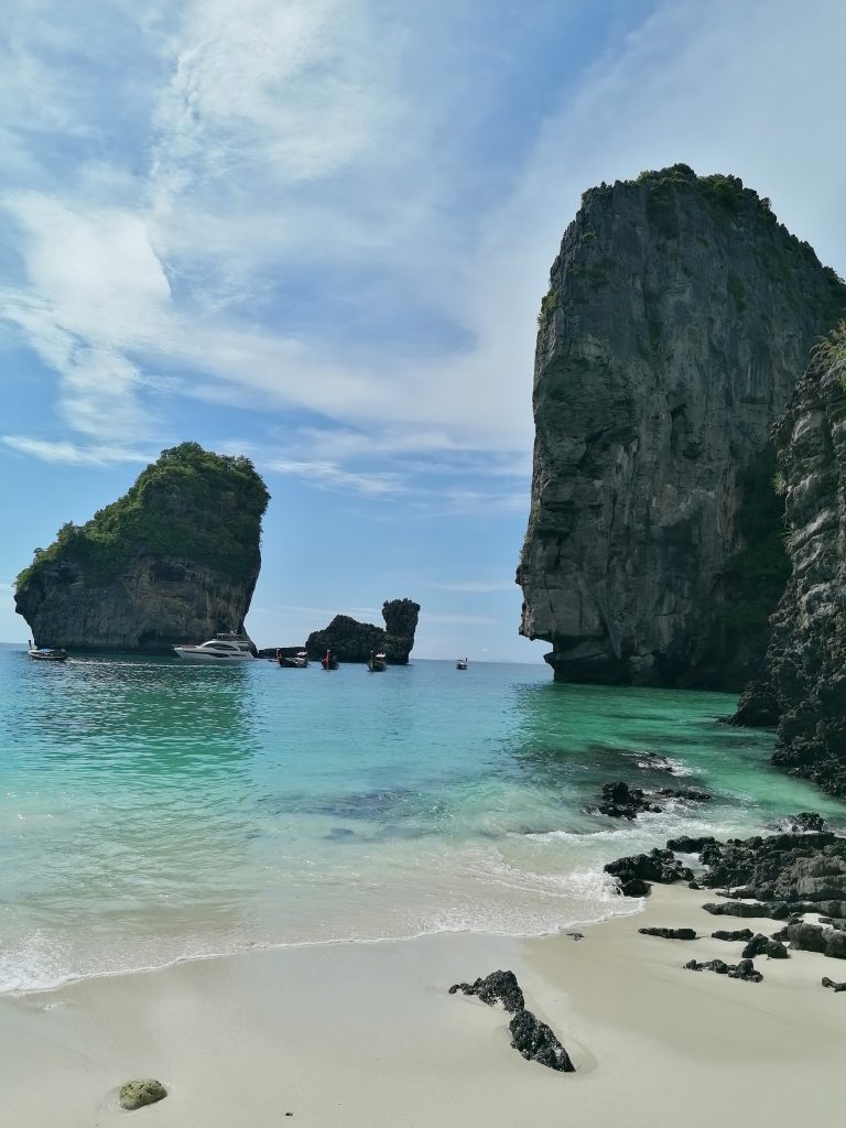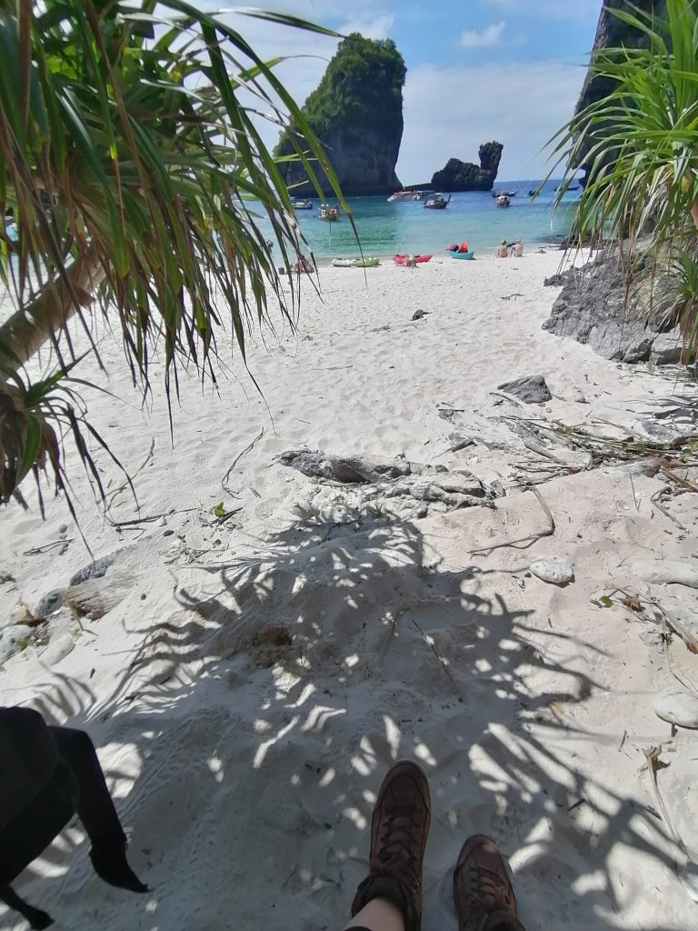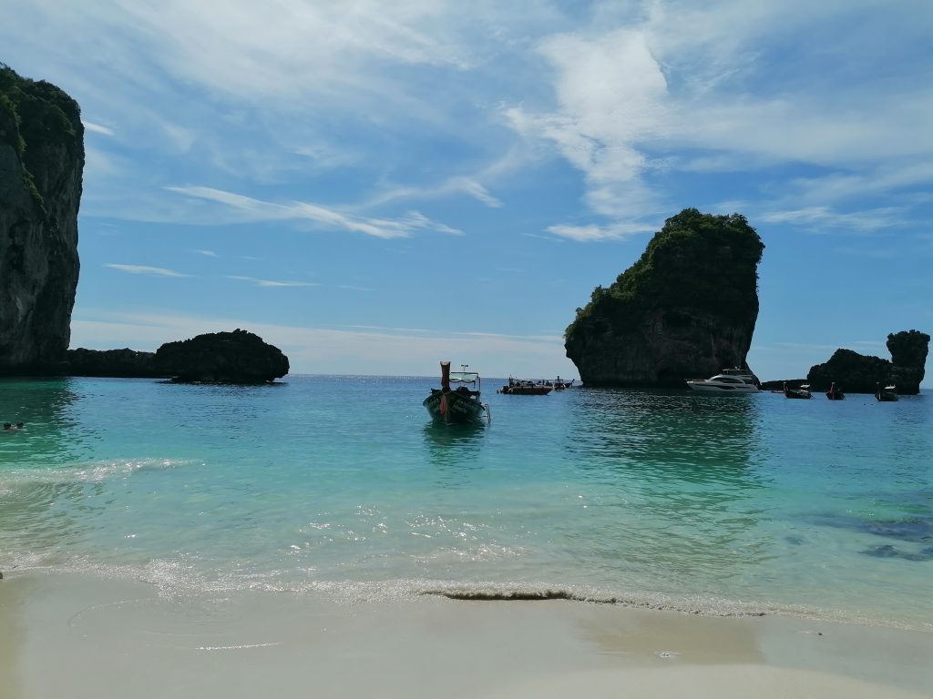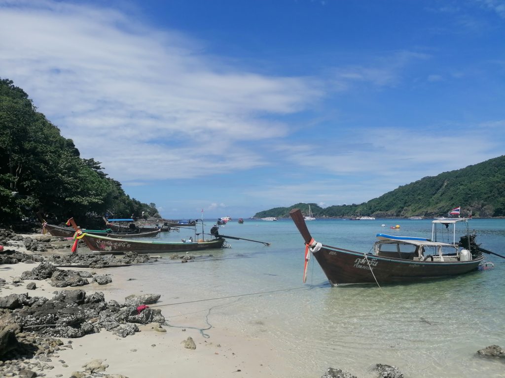 Auf Ko Phi Phi gibt es keine Autos, zumindest kann ich mich an keine erinnern. Die Insel ist klein, nahezu alles ist fußläufig erreichbar und alles wird von einem Schwarm von Booten umfahren. Die Hauptstraße besteht eigentlich nur aus Hotels, Restaurants, Bars und Shopping, alles auf Tourismus ausgelegt. Ich habe mal wieder Probleme mein Hostel zu finden, es gibt nämlich unter dem Namen Chao Koh ein Hotel, ein Restaurant UND mein Hostel und die sind alle ganz in der Nähe voneinander. Und ja, ich war zuerst im Restaurant, dort hat man mich auf das Hotel verwiesen, dort sah ich aus wie eine Obdachlose im 5-Sterne-Resort mit meinen Backpacker-Charme und dann erst habe ich weiter hinten mein Hostel entdeckt. Das war alles gar nicht peinlich.