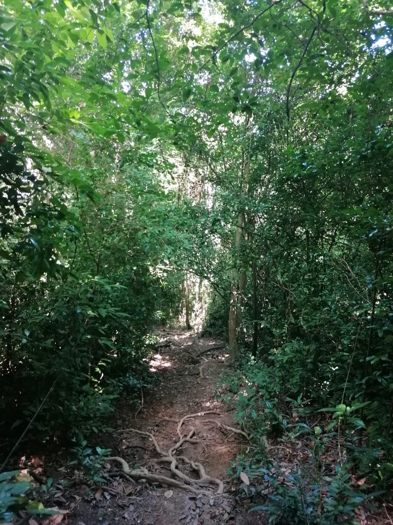Der „Nui Beach“ ist laut Internet ein verstecktes Paradies, das vor allem Lokale empfehlen. Dorthin kommt man nur mit dem Boot… oder wie ich, wenn man einmal quer über die Insel durch den Dschungel wandert. Ich folge dem Pfad und bin kurz danach im dichten Wald verschwunden. Im Regenwald habe ich gelernt, dass ich darauf achten soll, wohin ich meine Füße und vor allem meine Hände setze. Hier von einem giftigen Tier erwischt zu werden, wäre… ungut. Deshalb gehe ich vorsichtig, aber wie immer begeistert von der Regenwaldnatur weiter.