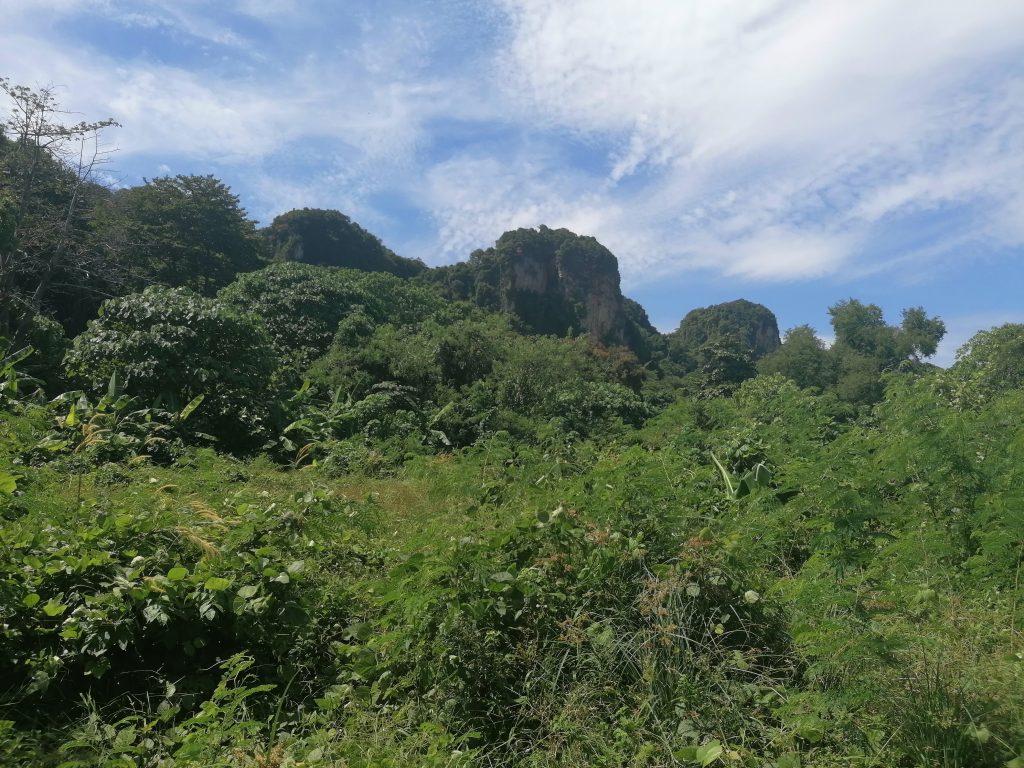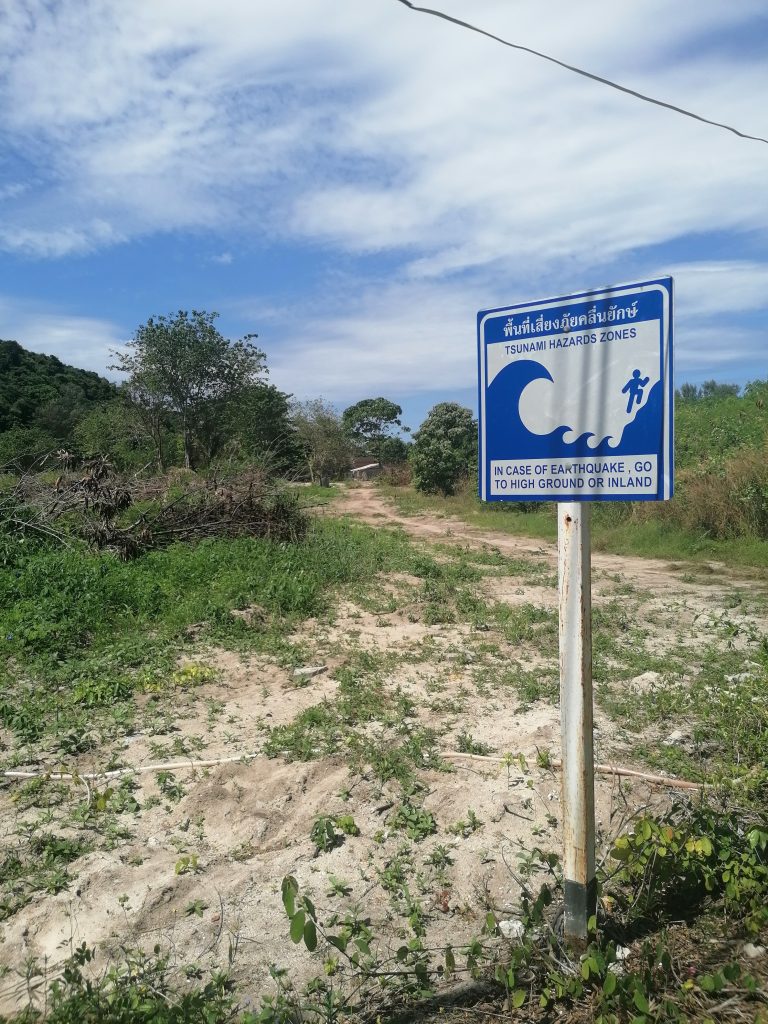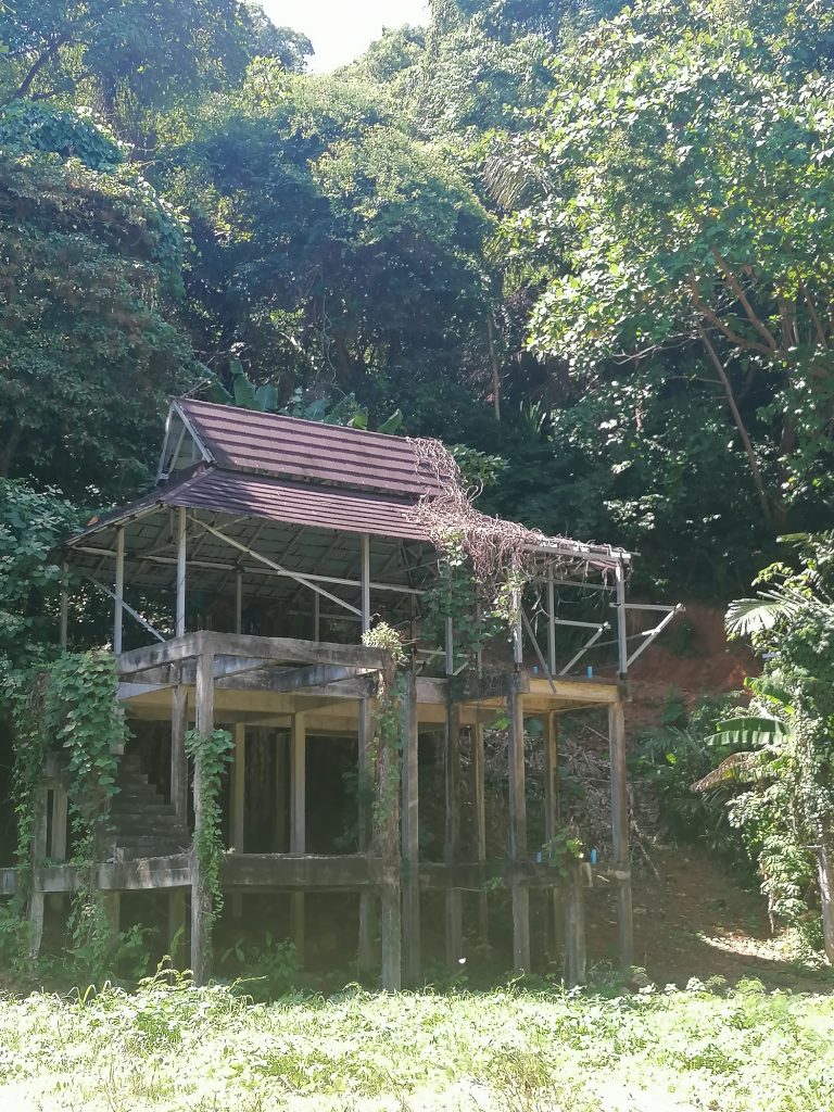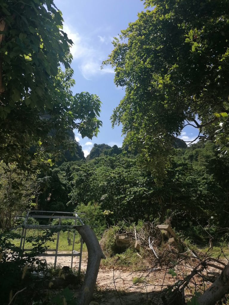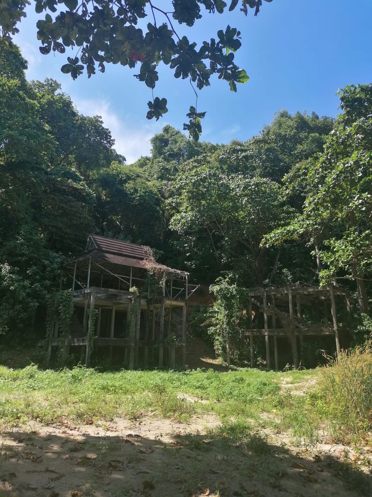Natürlich! Der Tsunami 2004 in Thailand hat wohl auch Ko Phi Phi getroffen. Ehrlicherweise weiß ich nicht mehr, von wo genau die Welle kam, aber als ich weitergehe entdecke ich einen Geisterort. Viele angefangene Häuser, wohl als Ferienhäuser oder Hotel gedacht, im Leerstand, voller Blätter, Äste und halb eingewachsen. Gespenstisch.