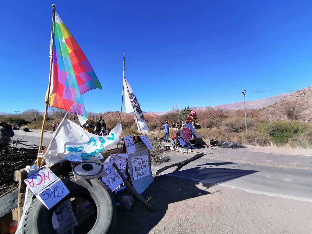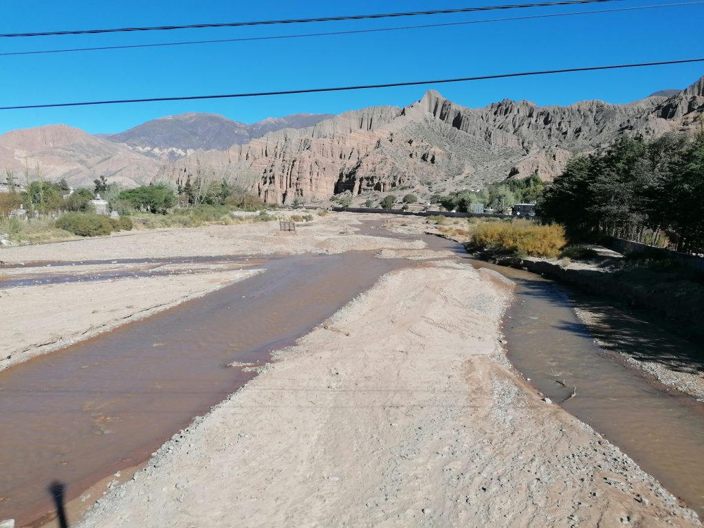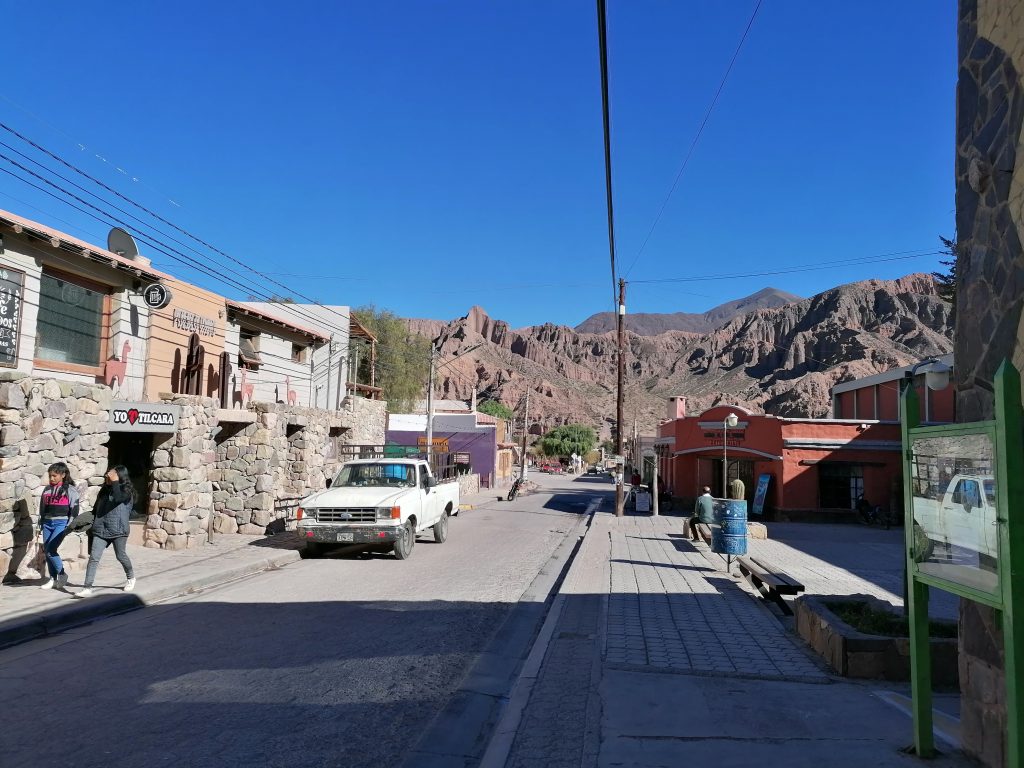 Ich frage, ob jemand anders fahren möchte, ich bin noch ein bisschen platt, Chris meldet sich und wir steigen ein. Am Vortag hatten wir in der Peña den Tipp bekommen, kurz vor 12 an der Blockade vor Tilcara anzukommen, um 12 würde sie öffnen und wir können durch. Gesagt getan. Wir sind um etwa 11:30 Uhr dort und müssen doch noch etwas warten. Chris bietet an, im Auto zu warten und das Auto dann in der Stadt zu parken, Anne bleibt ebenfalls, aber Katrine und ich ziehen daraufhin schonmal los ins Dorf. Wir überqueren die Blockade zu Fuß (Das ist kein Problem), danach einen Fluss und kommen dann in die Kleinstadt Tilcara.