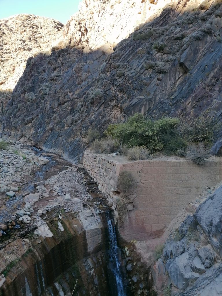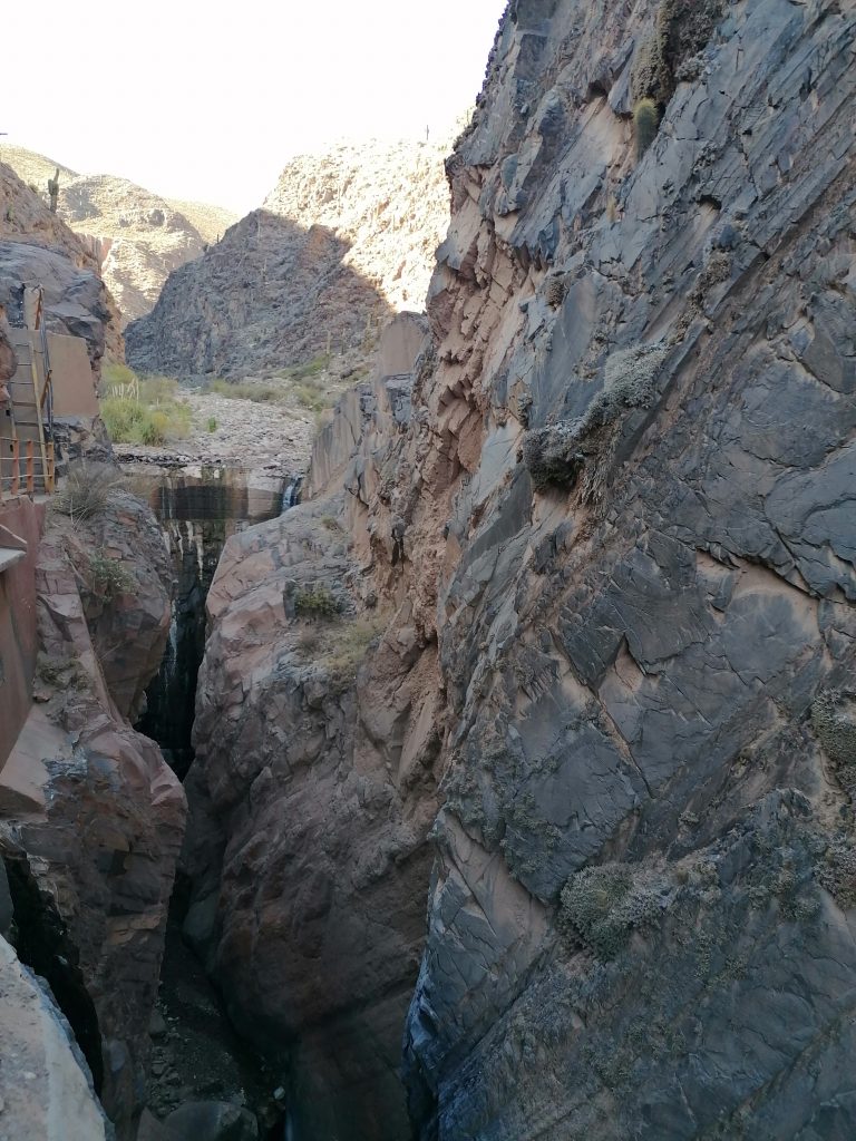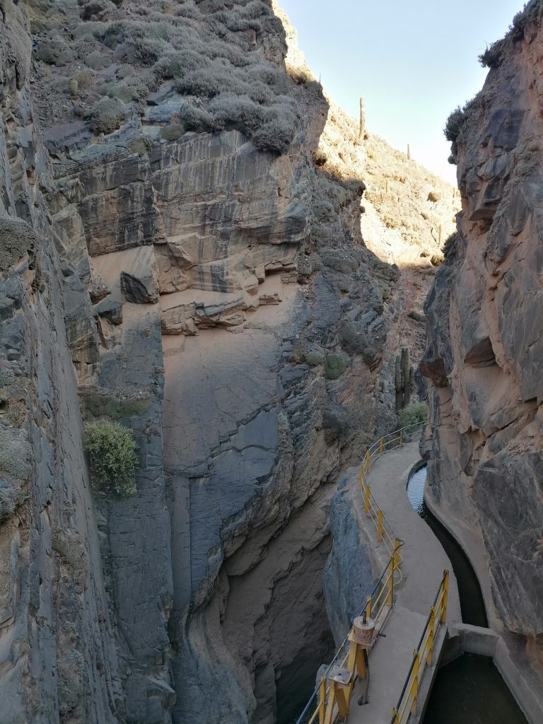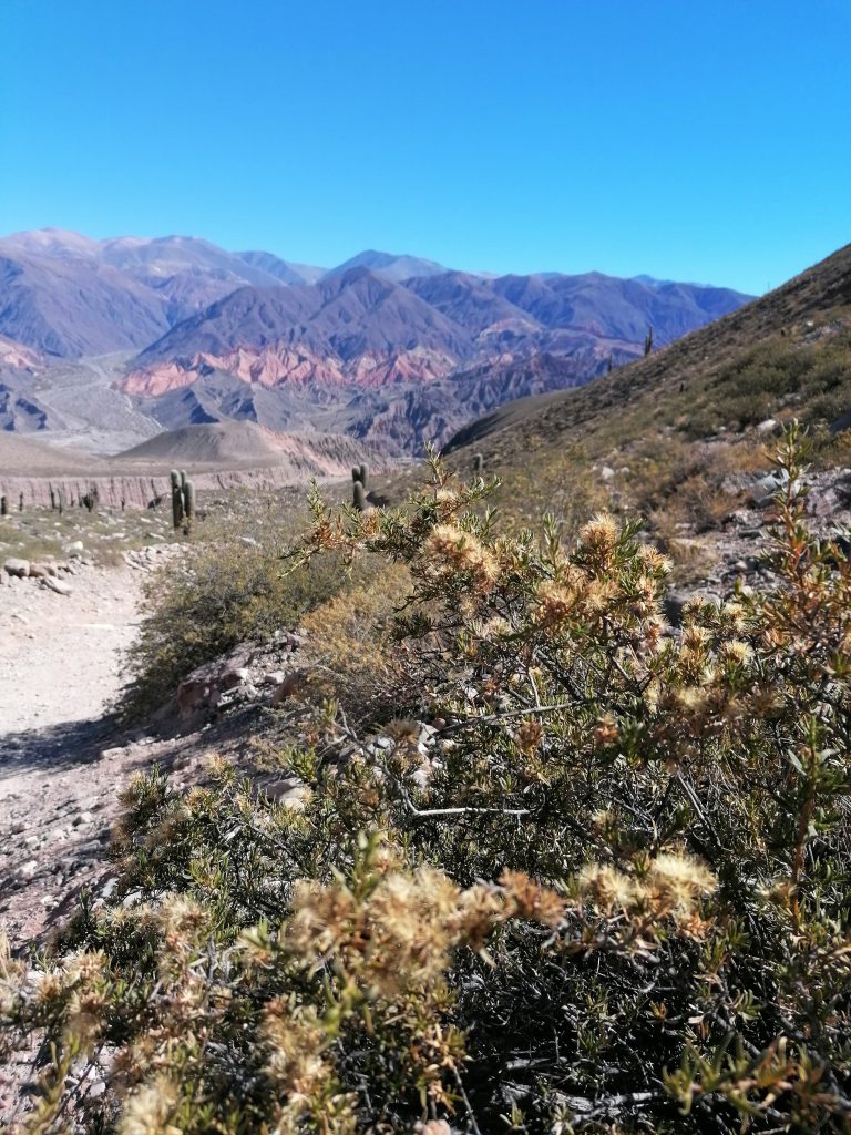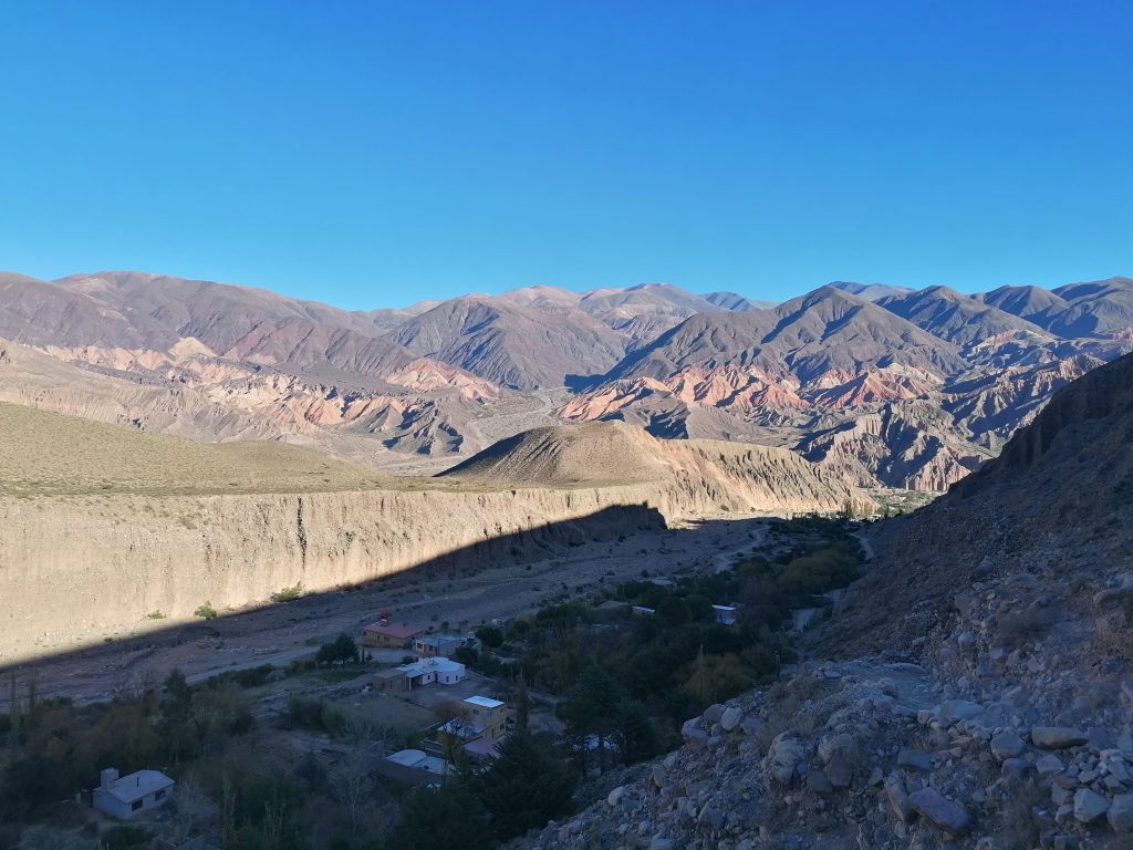 Nach einer gut durchgeschlafenen Nacht sieht die Welt schon wieder anders aus. Katrine hat eine kleine Wanderung geplant und ich fühle mich heute fit genug, sie zu begleiten. Chris ebenso. Wir frühstücken eine Kleinigkeit und fahren dann VOR der Blockade auf einen kleinen Parkplatz, wo wir das Auto zurücklassen. In Tilcara gibt es wieder die Tortas Fritas und wir gönnen uns jeder noch eins, bevor es losgeht. Der Weg führt uns zunächst durch die Stadt nach oben. Wir kommen an einer schönen alten Brücke vorbei, machen ein paar Fotos und stellen dann fest, dass das rustikale Ding offensichtlich noch gut genutzt wird, weil uns einige Autos weghupen.