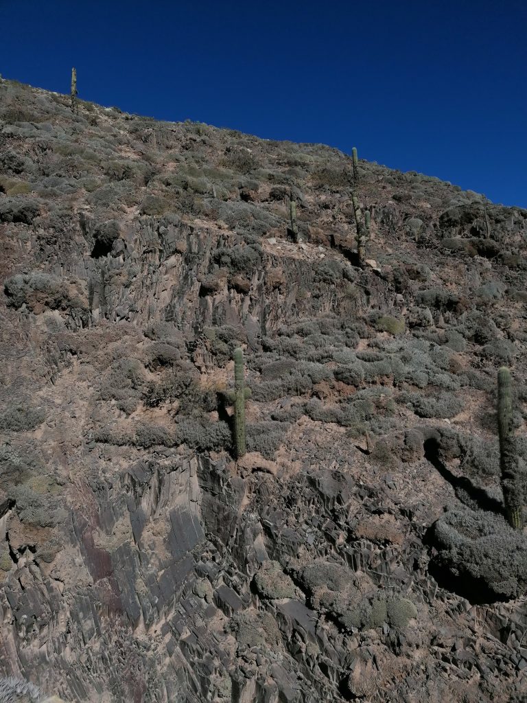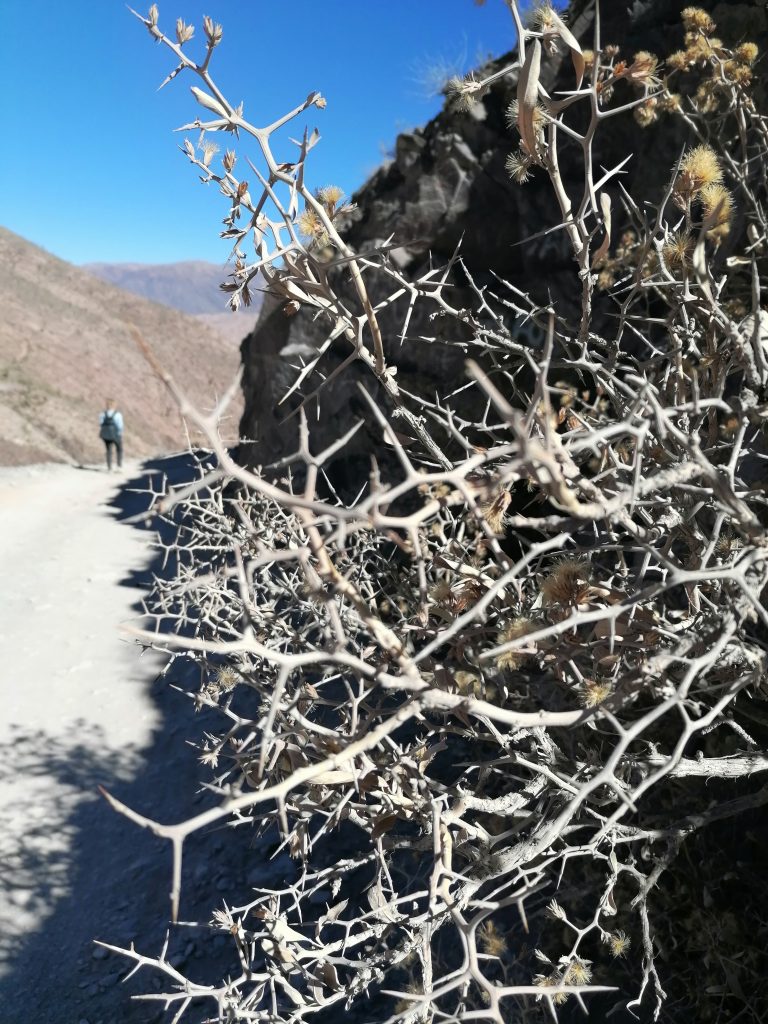 Wieder oben am Aussichtspunkt stelle ich fest, dass das Überleben hier oben, vor allem für die Tierwelt echt hart sein muss. Es gibt nichts außer Pflanzen, die irre lange Stacheln haben oder andere Abwehrmechanismen: Tödlich, um selbst nicht getötet zu werden. Eine absolut feindliche Umgebung. Und trotzdem schaffen es die Vicuñas, Füchse, Schlangen und Insekten trotzdem irgendwie, sich hier durchzuschlagen. Davor hab ich Respekt.