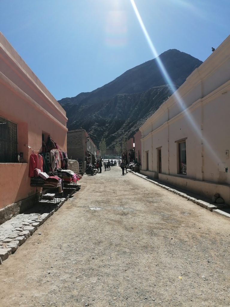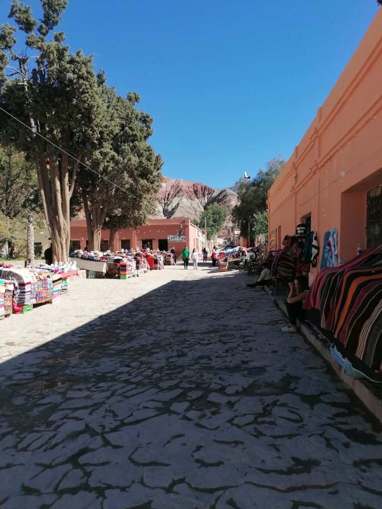 Unser Ziel ist wieder Purmamarca, diesmal bei Tageslicht. Wir stellen unser Auto vor dem kleinen Dorf ab und laufen hinein. Beide wollen wir nur ein bisschen durch die Straßen schlendern, die Atmosphäre auf uns wirken lassen. Das Dorf ist wirklich schön: