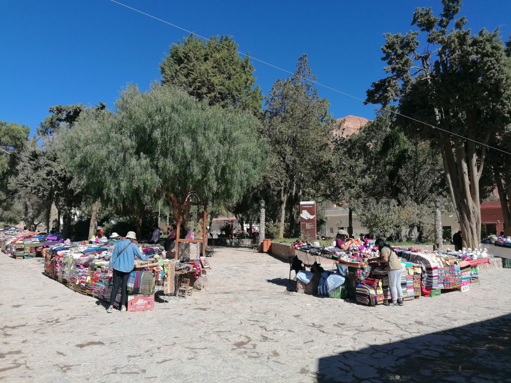 Die Märkte hier sind wirklich großartig. Es gibt so viel wunderschöne Handwerkskunst mit bunten Farben und Mustern, Keramik, Schmuck, Musikinstrumente, Matebecher, Holzarbeiten, Bilder… man möchte säckeweise Sachen mit nach Hause schleppen und es kostet uns viel Überwindung, nicht zu viel zu kaufen. Beide bleiben wir bei den wunderschönen Strickpullovern hängen, mit eingestrickten Lama-Motiven oder anderen indigenen Mustern, die einfach zu schön sind. Klar, Massenware, nicht handgemacht, alle Touris haben diese Pullover/Jacken/Ponchos… aber ich sag mal so, sowas bekommt man nur in Südamerika und somit hat es doch seinen Reiz. Wir wühlen uns durch, lassen es am Ende aber doch bleiben.