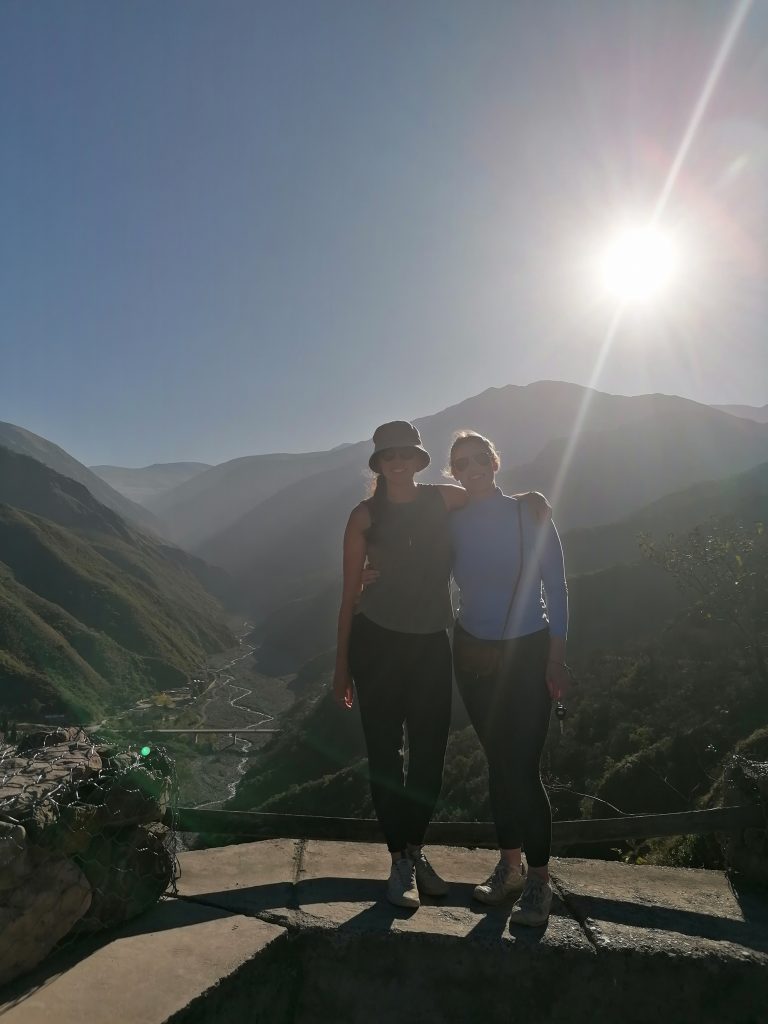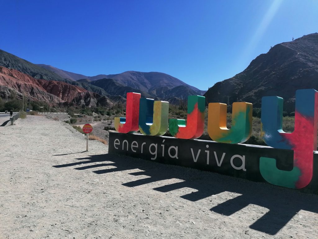 Wir genießen es einen Moment und gehen dann zurück zum Auto. Es soll einen Weg um den großen roten Felsen herumgeben, aber der scheint gerade gesperrt zu sein/ erneuert zu werden, wir haben keine Chance. Langsam wird es Zeit, in die Nähe der Blockade zu fahren, sodass wir gegen drei weiterkommen. Während wir in der Blockade warten, geht Anne ein bisschen spazieren, ich schreibe Notizen für den Blog. Nachdem wir die Blockade passiert haben, kommen wir langsam ins Gespräch, reden über dies und das, erst oberflächlich, dann auch tiefer… und ich lerne einen ganz neuen, tollen Menschen kennen. Jetzt bin ich richtig froh, dass wir noch ein bisschen Zeit zu zweit haben. Ihre Geschichten sind interessant und wir unterhalten uns gut. Außerdem bemerken wir, wie sich die Natur um uns herum in kürzester Zeit verändert. Von der Kakteen-Wüste in Purmamarca kommen wir langsam in eine immer grüner werdende Zone. Wir fahren bergab und bergab, an Vulkanen vorbei, an Flüssen und kleinen Seen. Dennoch sind wir überrascht, das hätten wir einfach gar nicht erwartet.