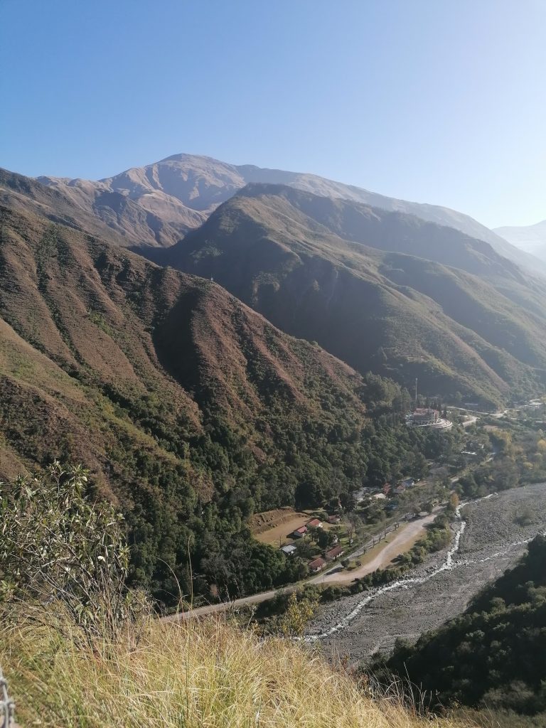 Unser Ziel ist für heute tatsächlich das „gefährliche“ San Salvador de Jujuy, der Ausgangspunkt für die Proteste und Blockaden, der Ort, den wir zuerst großräumig umfahren haben. Allerdings nicht direkt im Ort, Anne hat uns in einer kleinen Siedlung außerhalb eine schöne kleine Unterkunft herausgesucht. Aber auch die lassen wir zunächst links liegen und fahren ins Gebirge, wo das Internet eine schöne Lagune mit Wasserfall vermutet. Wir fahren in Richtung der Thermen, natürlicher, heißer Quellen, über denen jetzt natürlich ein großer Komplex steht. Daneben führt eine Straße in die Berge zu einem Aussichtspunkt, an dem wir kurz hängen bleiben… es ist nämlich ein echt schöner Ausblick auf eine Vegetation, die ich kaum noch kenne. Alles ist grün, es gibt viele Bäume und der Fluss zieht sich idyllisch durch das Tal.